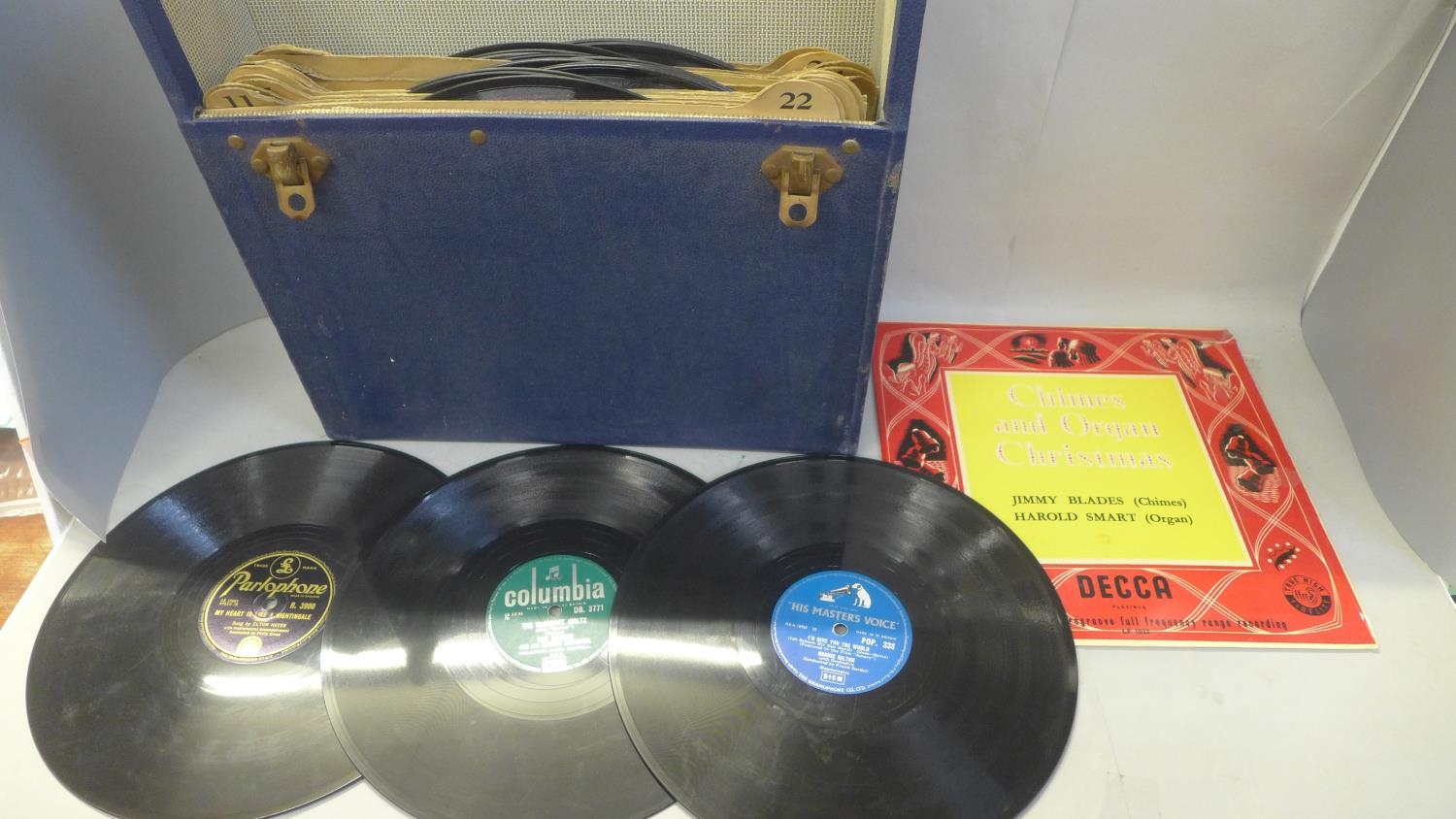 A collection of 78 rpm records, in case