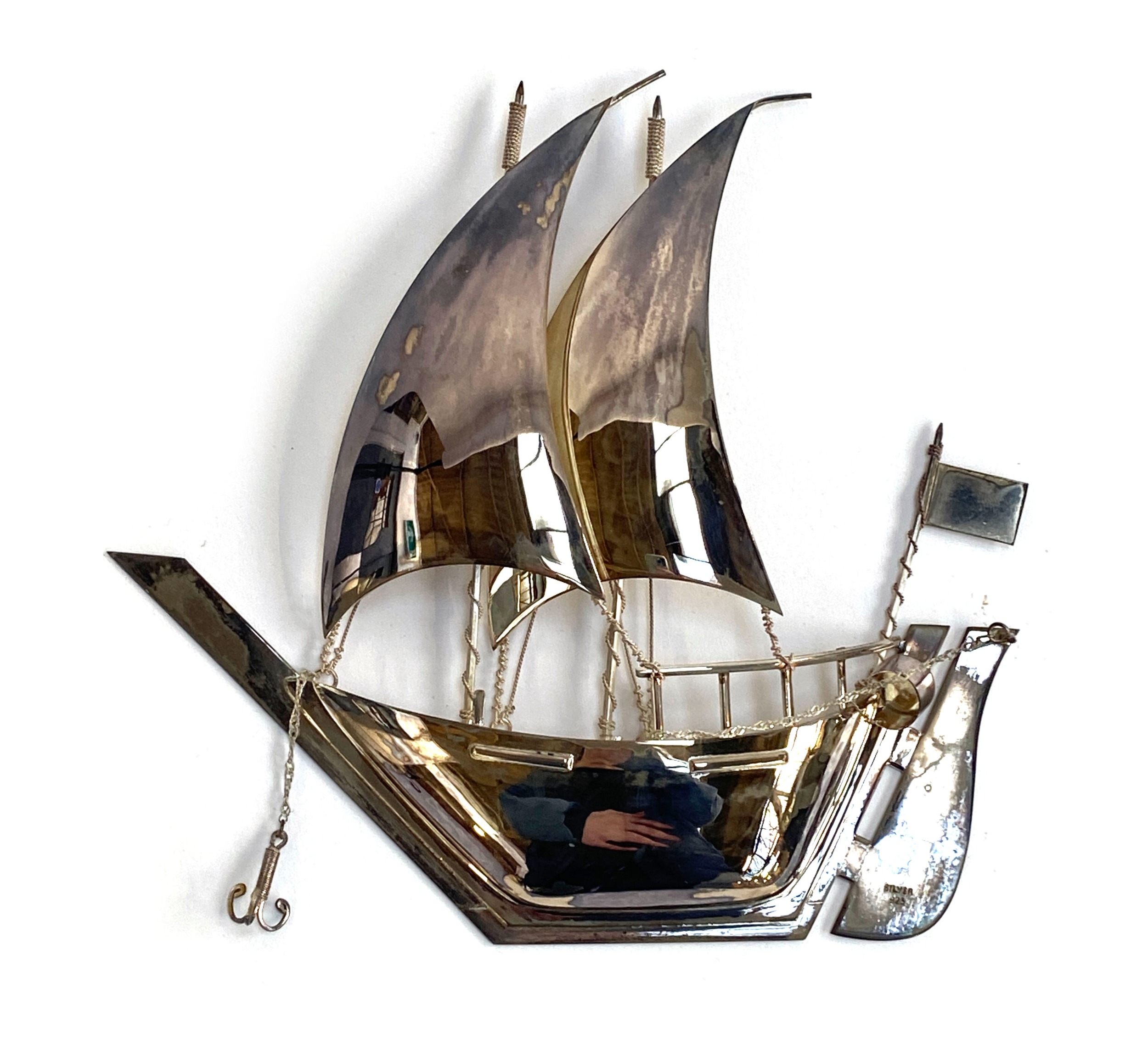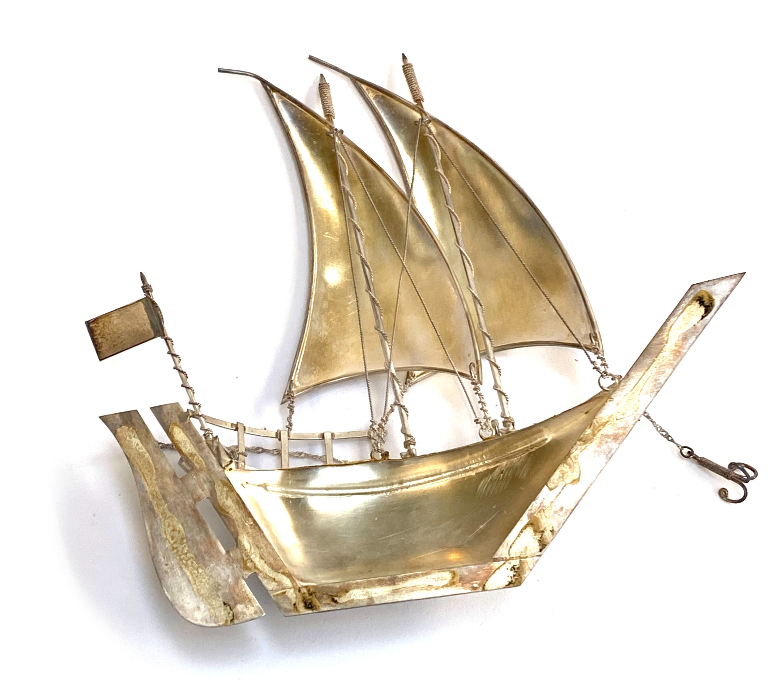 A 925 silver model of a sailing ship, stamped 'Silver 925', 20.5cmW, 173g