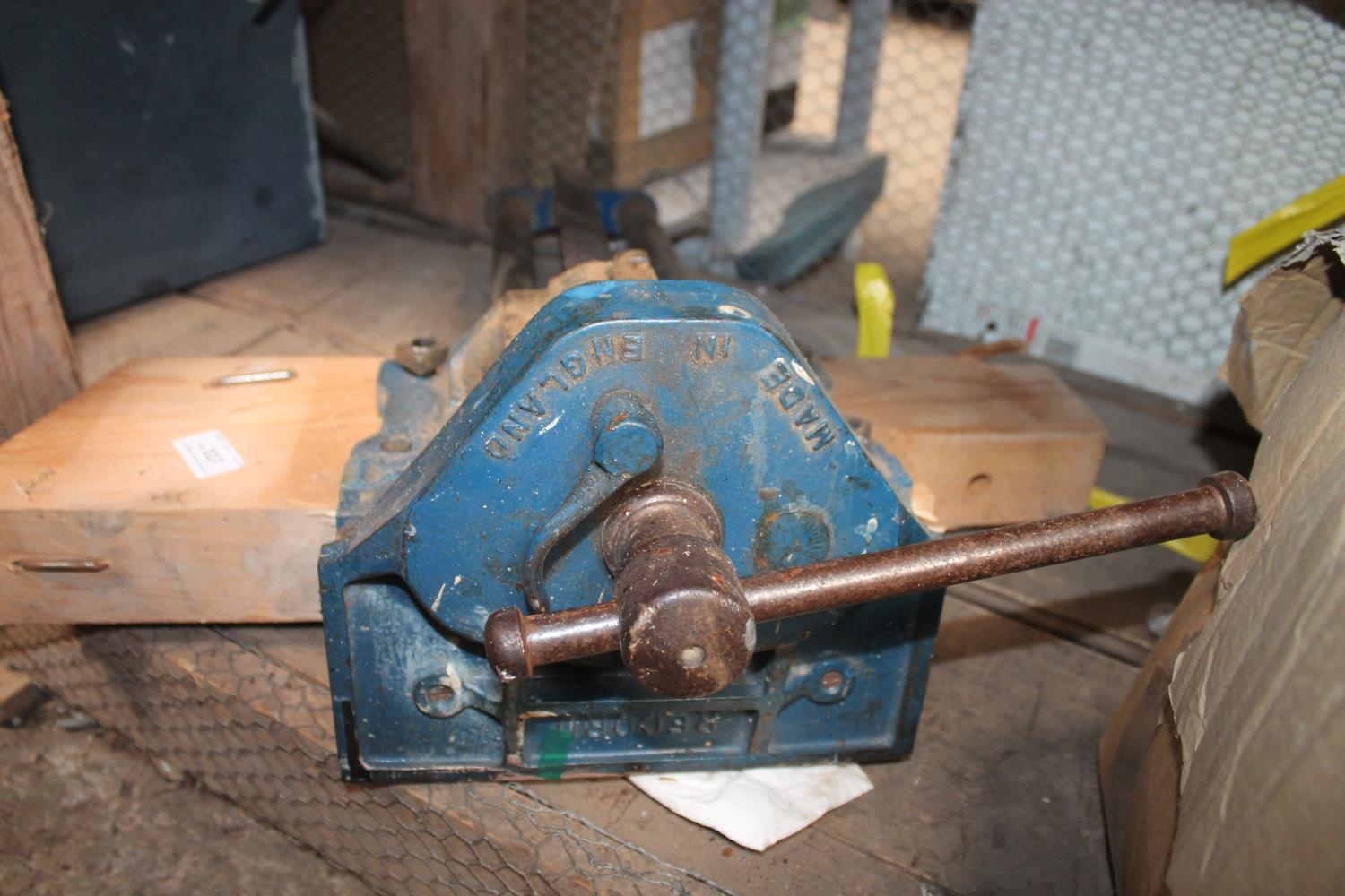 LARGE RECORD NO.52 1/2E TABLE MOUNTED VICE WITH QUICK RELEASE, GOOD ORDER