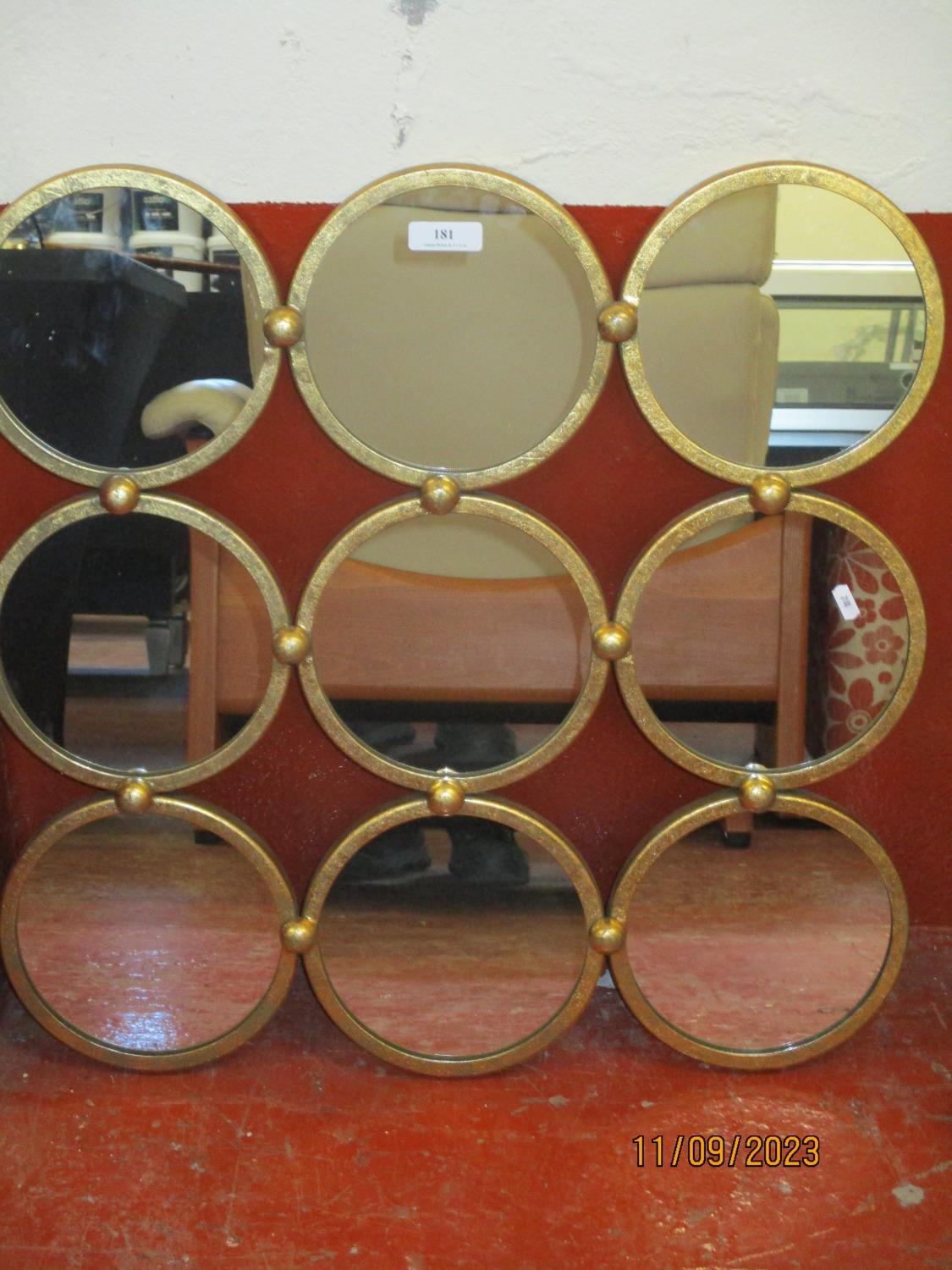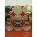 A contemporary gilt framed wall mirror consisting of nine circular individual mirrors