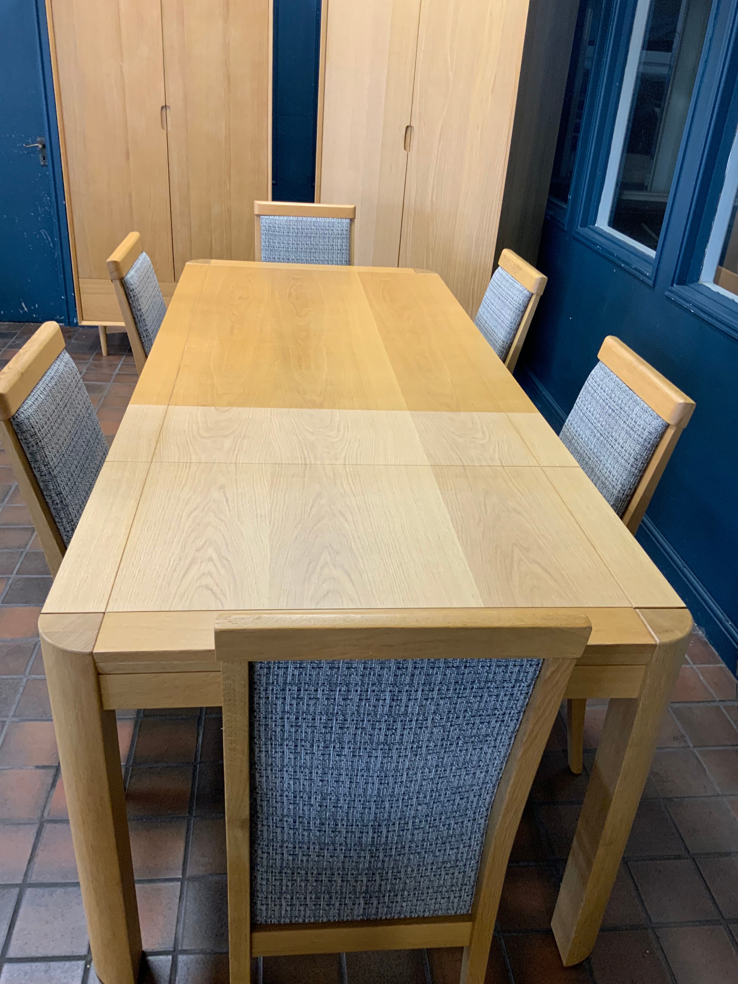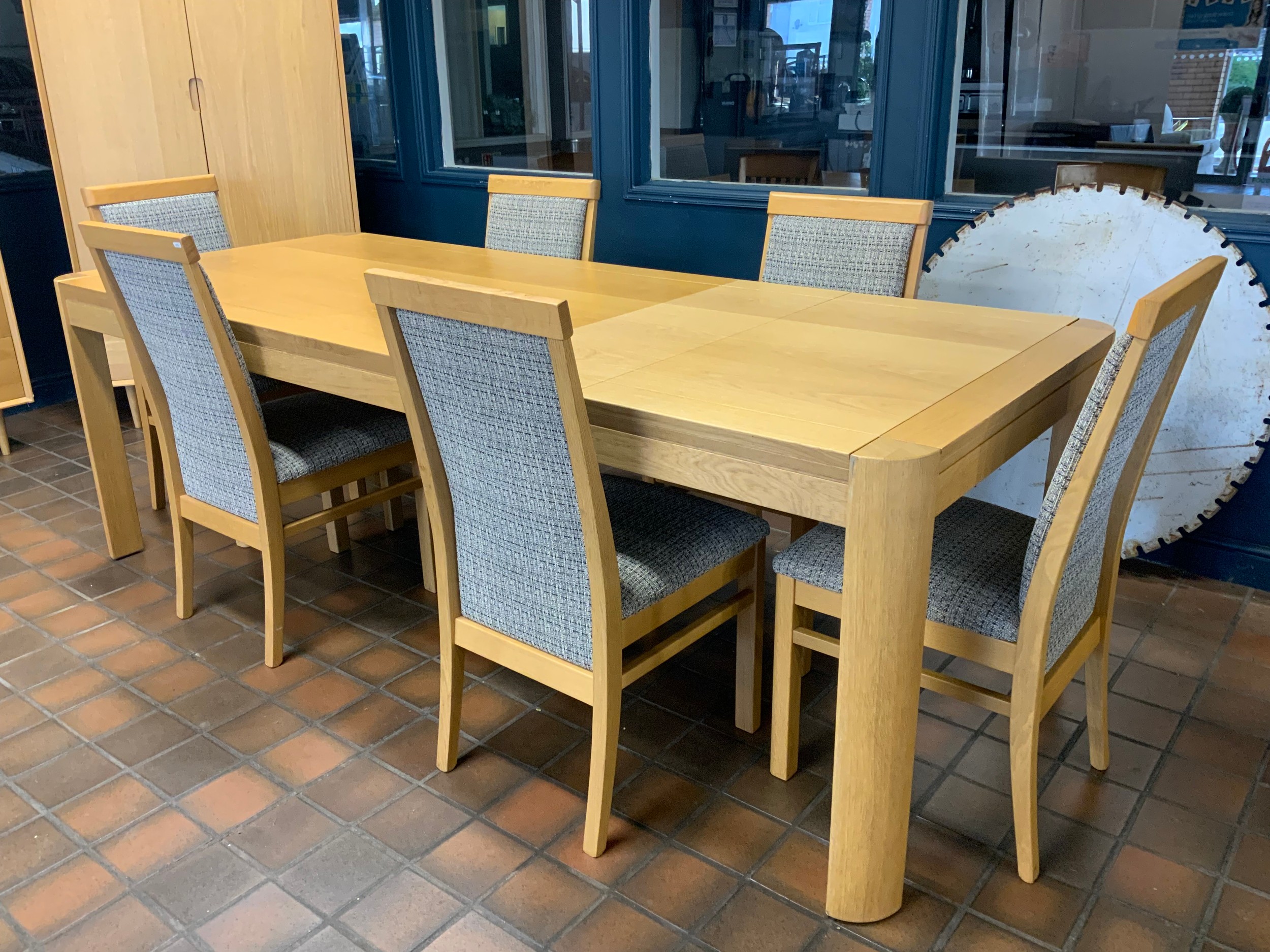 FARO OAK EXTENDING DINING TABLE WITH 6 OAK CHAIRS COST NEW £1955 - The dimensions are: