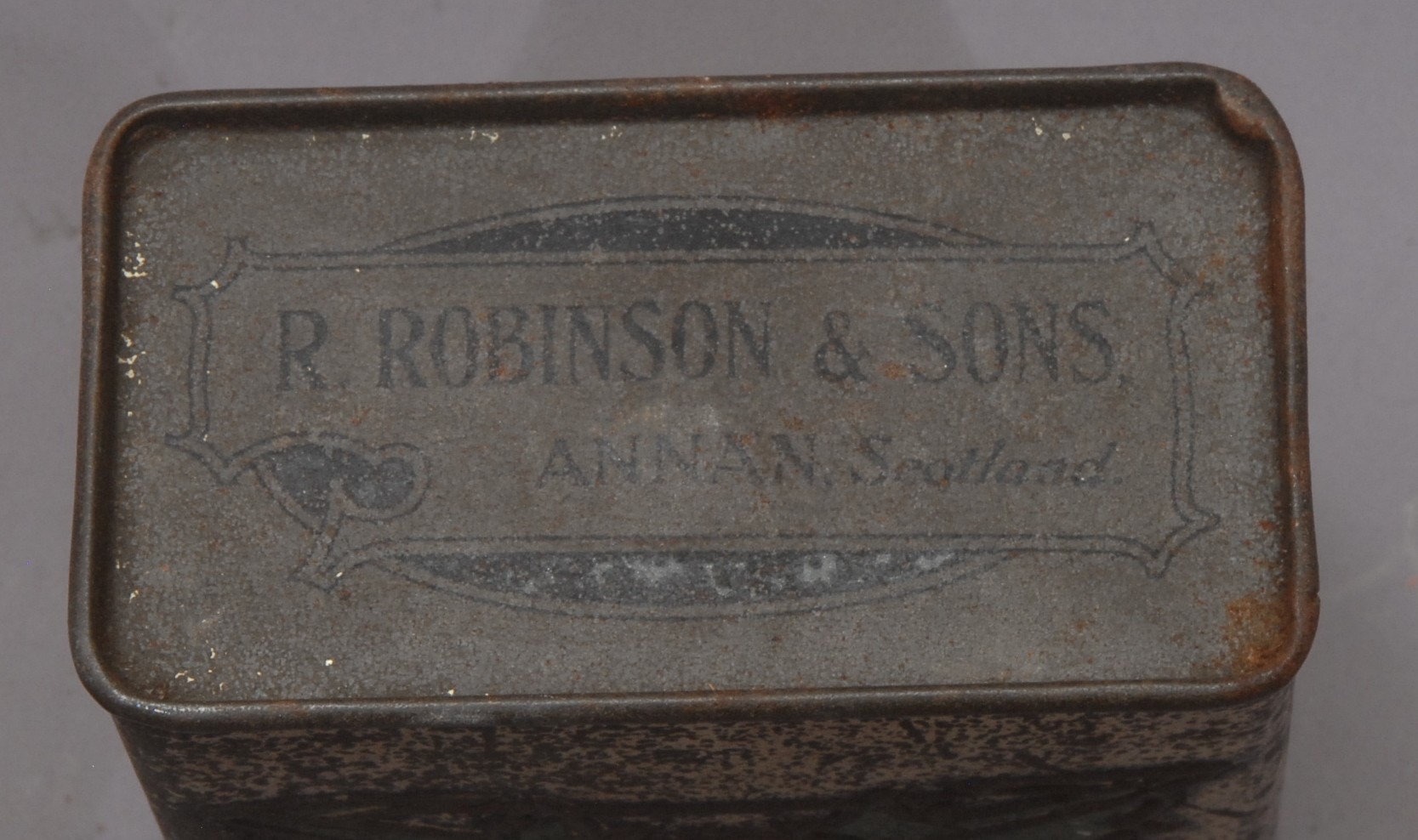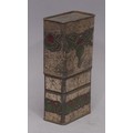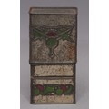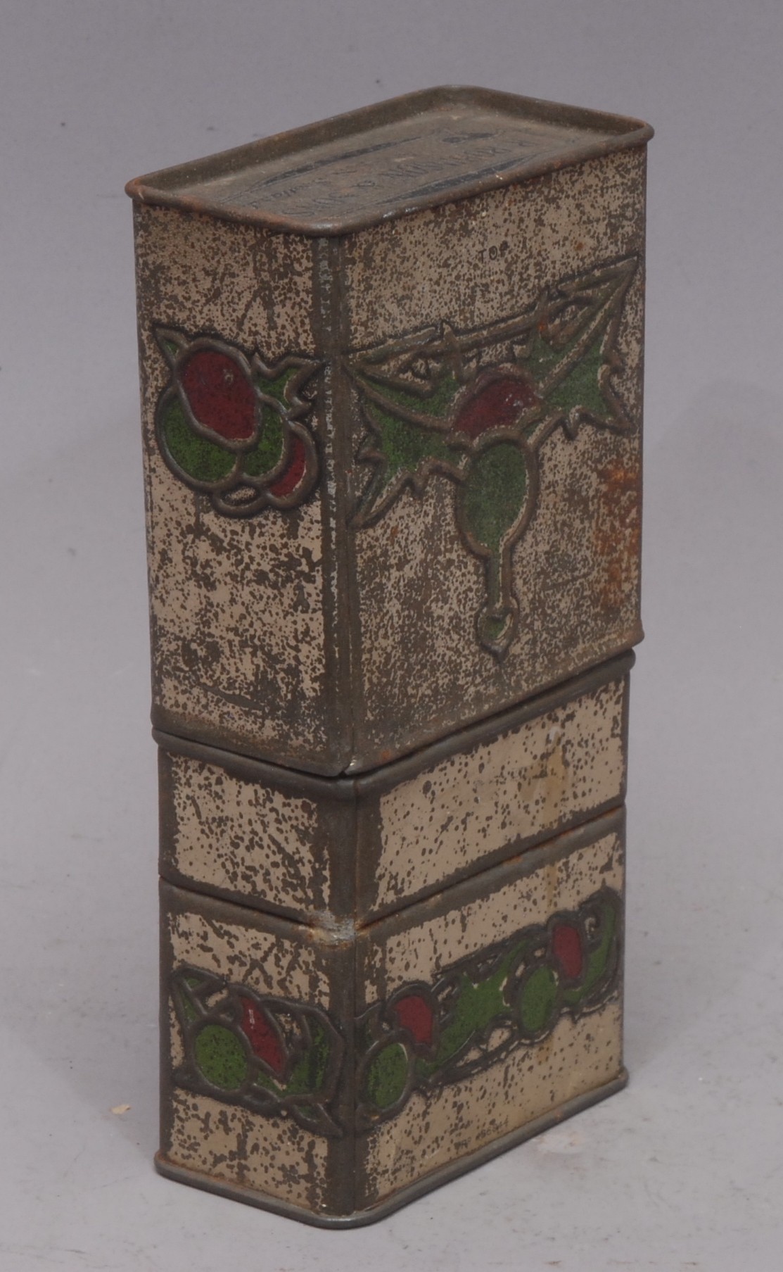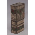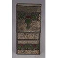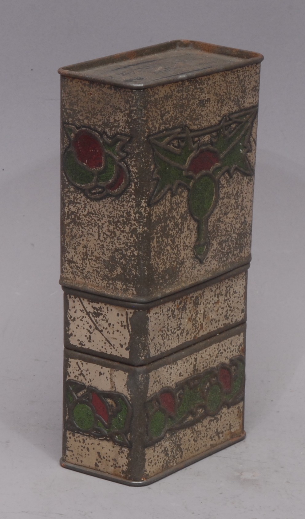 Advertising - a Scottish Art Nouveau promotional novelty biscuit tin whisky flask, by R Robinson & Sons, Annan, Scotland, embossed in the Macintosh taste with stylised thistles, the push-fitting cover enclosing a glass bottle, 16.5cm high, c.1915