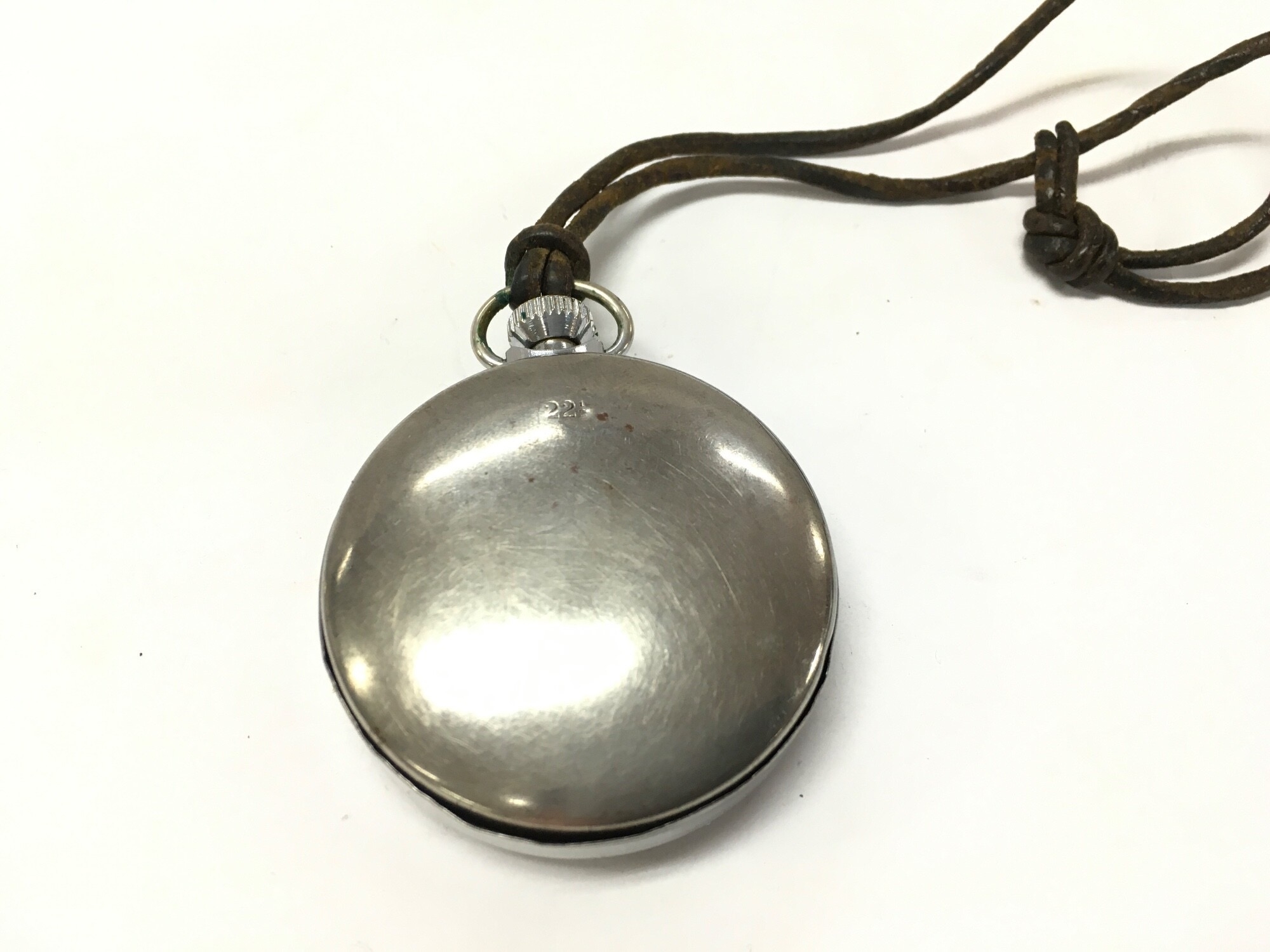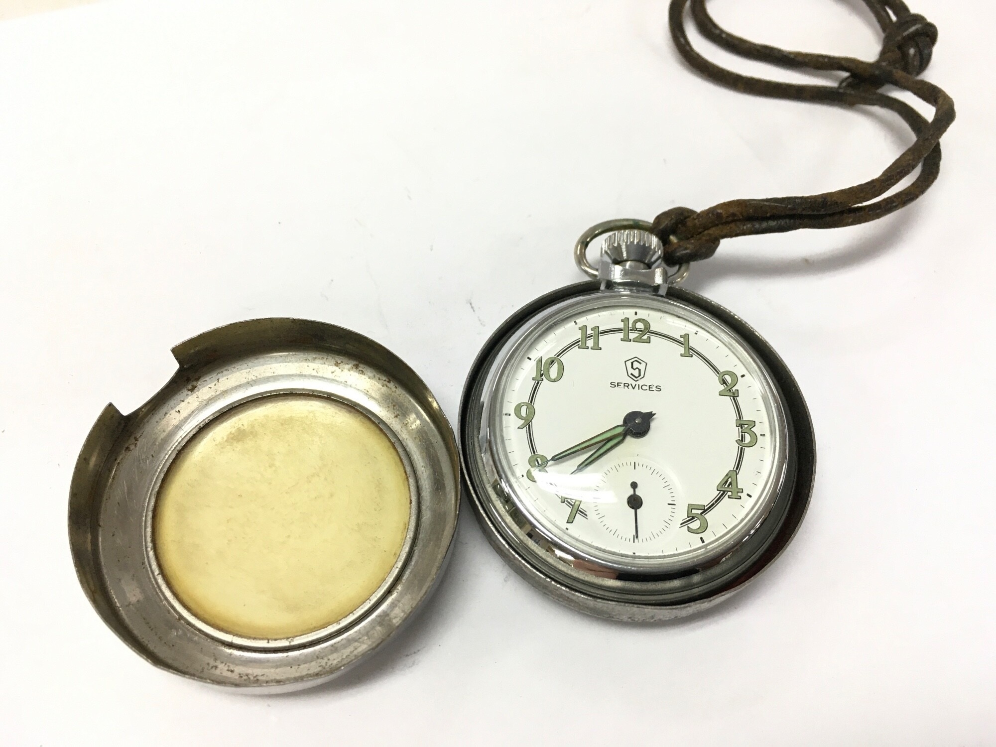 A 1940s Military issue Services pocket watch in a carry necklace case