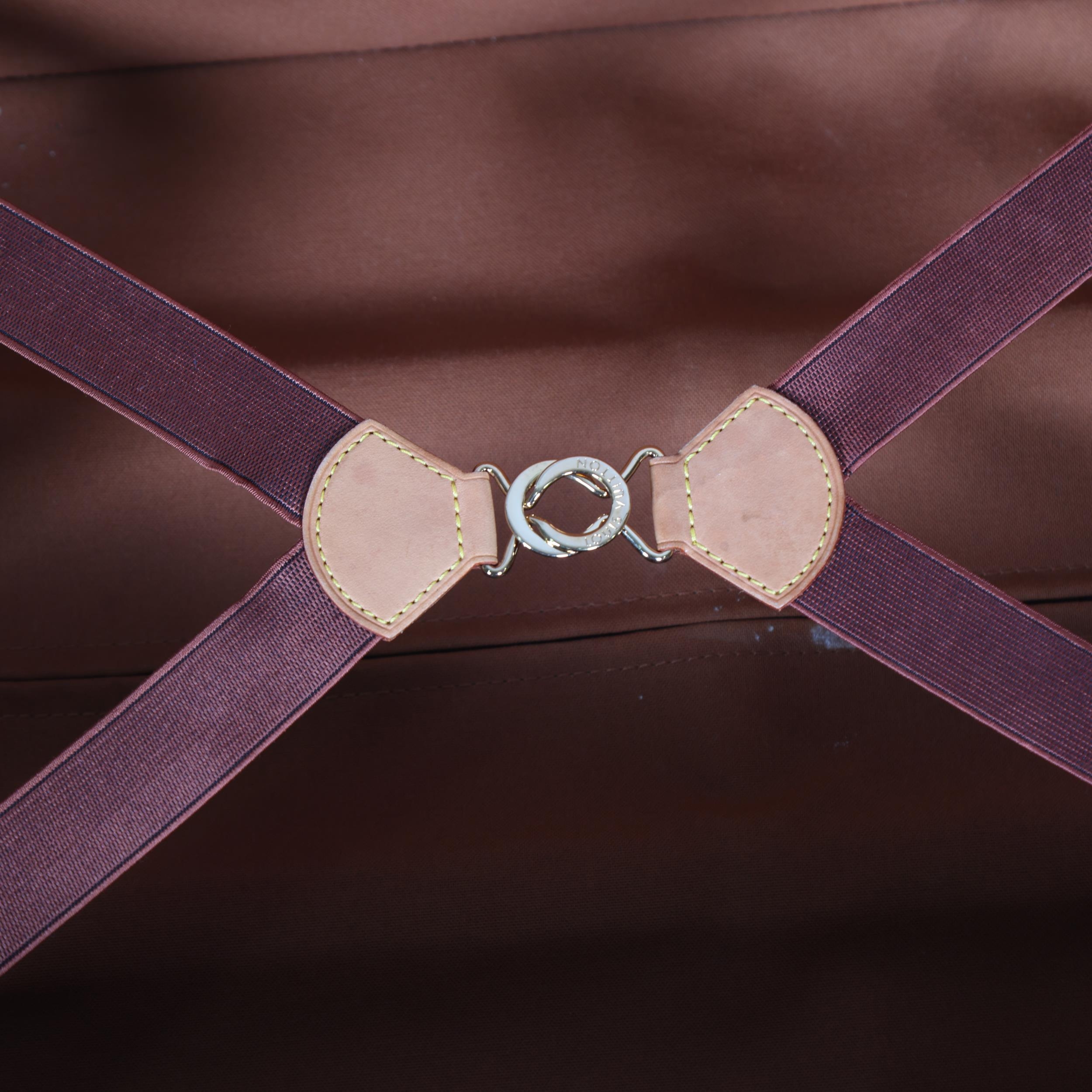 Good used condition, some staining to the handles and the pale leather corners, wheels scuffed