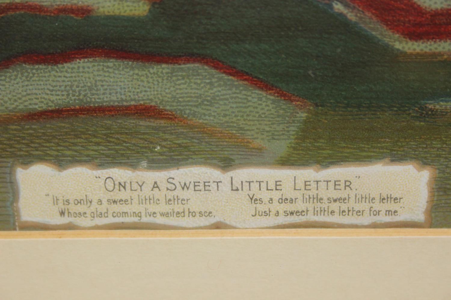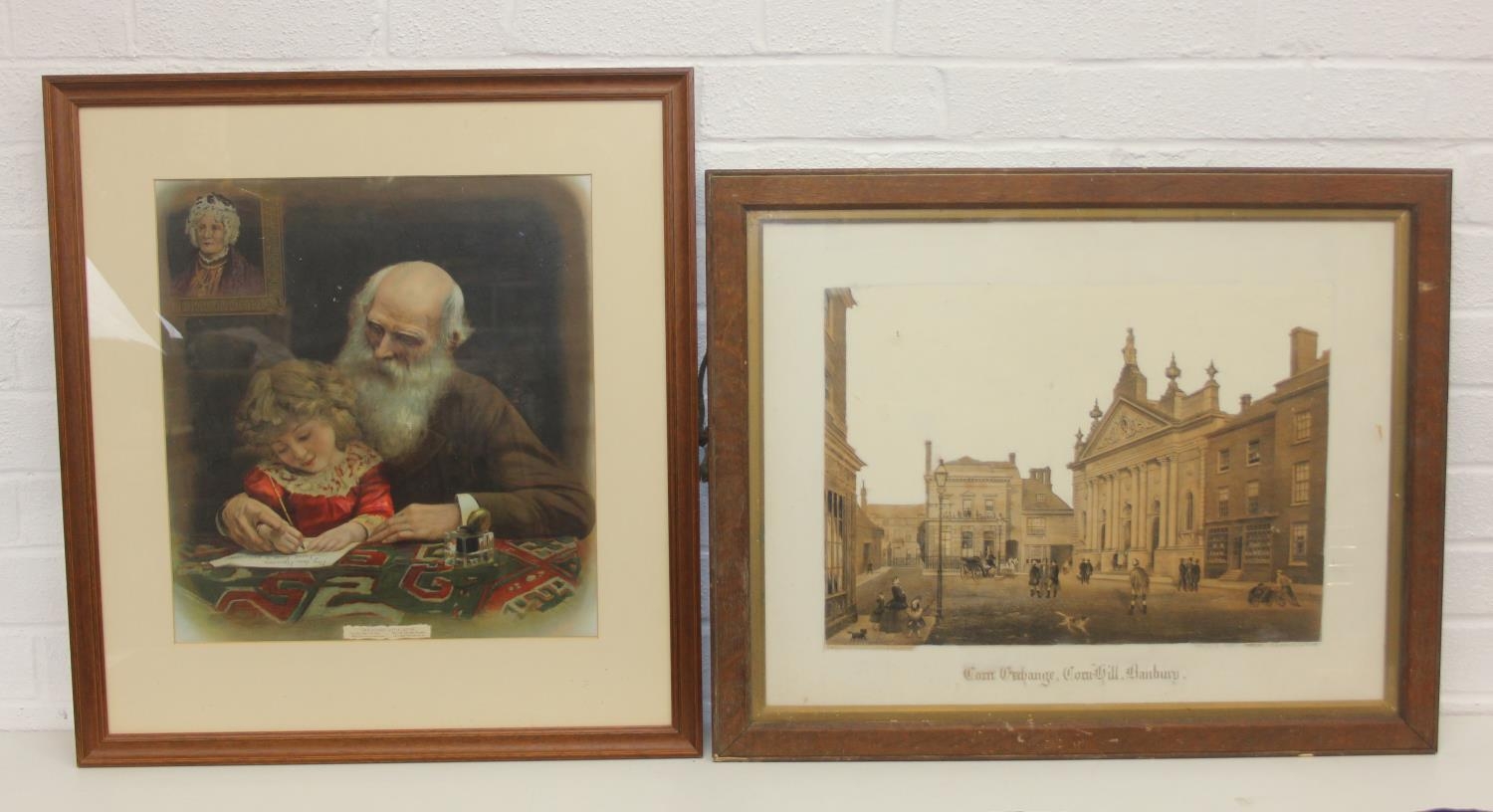 Two antique prints, one of the Banbury Corn Exchange by John Austin & Son of Oxford, in oak frame, 68cm x 54cm, and "Only A Sweet Little Letter" print, 64cm x 58cm [2]