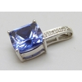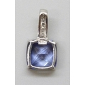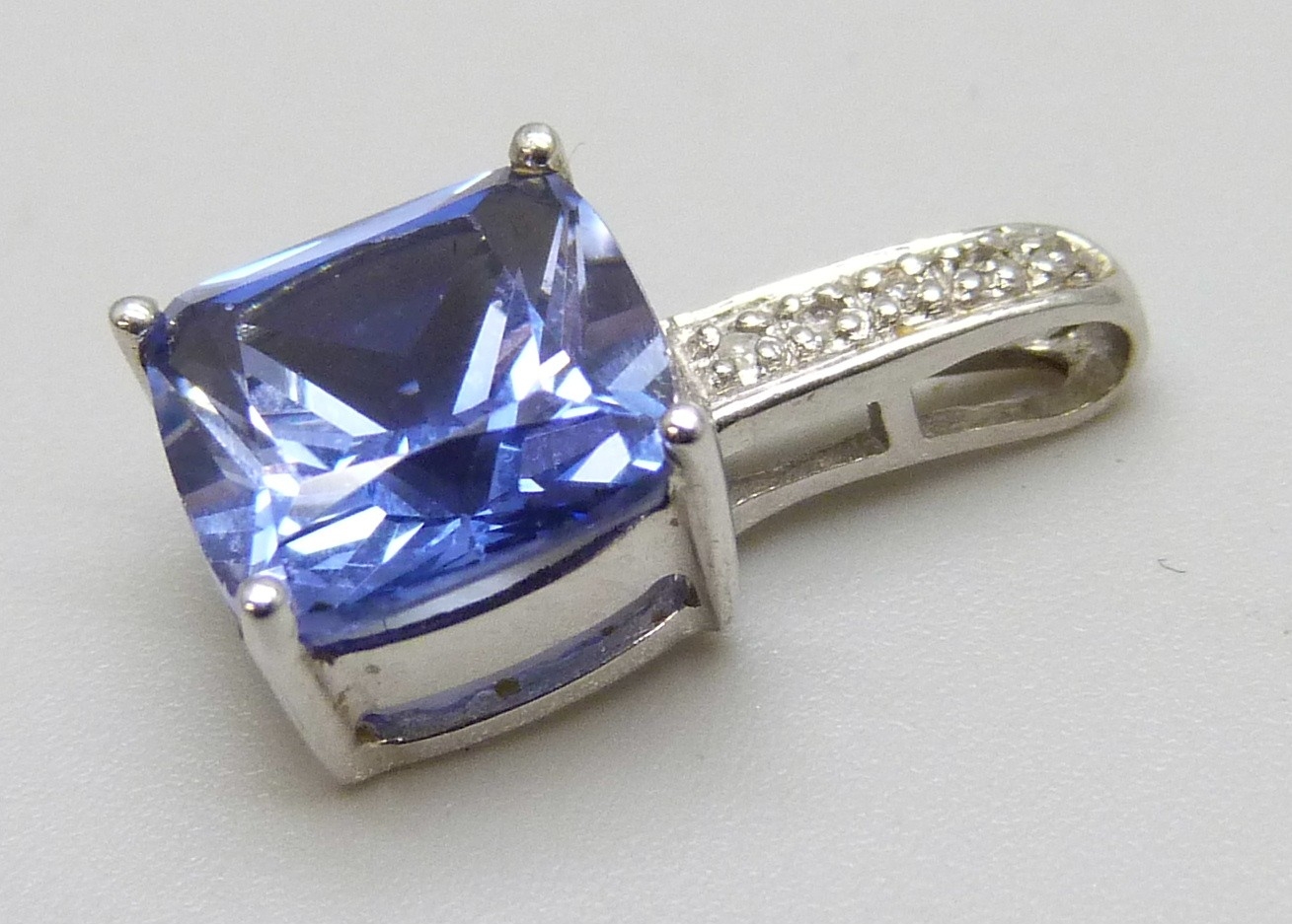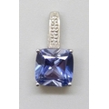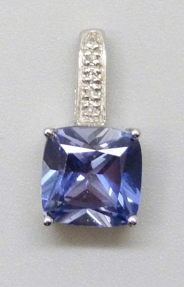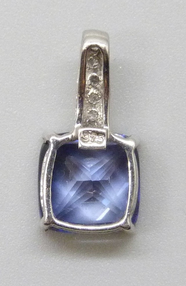 A 9ct gold, sapphire (possibly synthetic) and diamond pendant, 1.2g, 1.5cm including bail