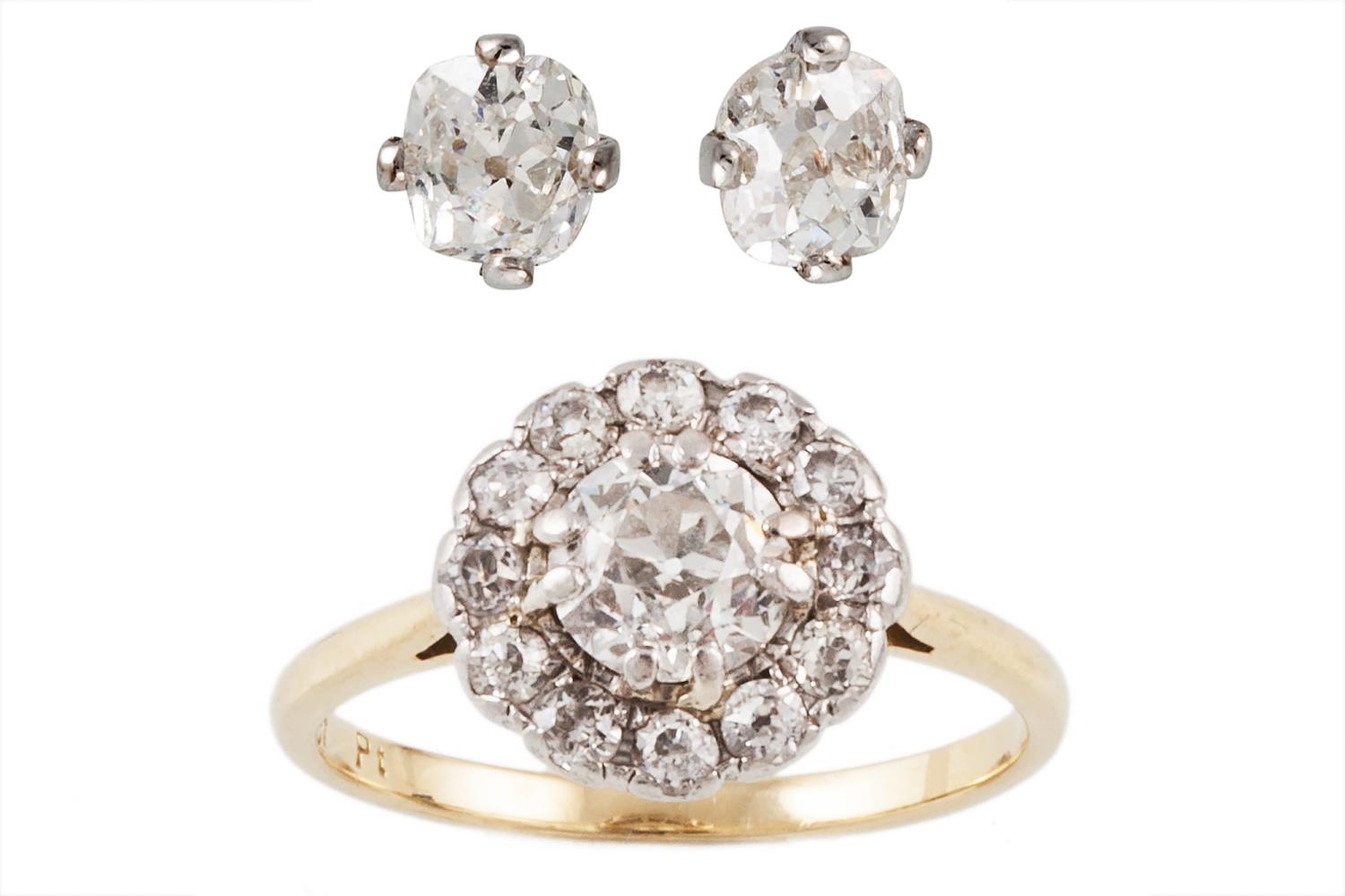 A PAIR OF DIAMOND STUD EARRINGS, set with old cushion cut diamonds, mounted in white gold. Estimated; weight of diamonds; 0.64 ct