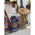Collection of mostly blue ceramic garden pots, plus a tall t...