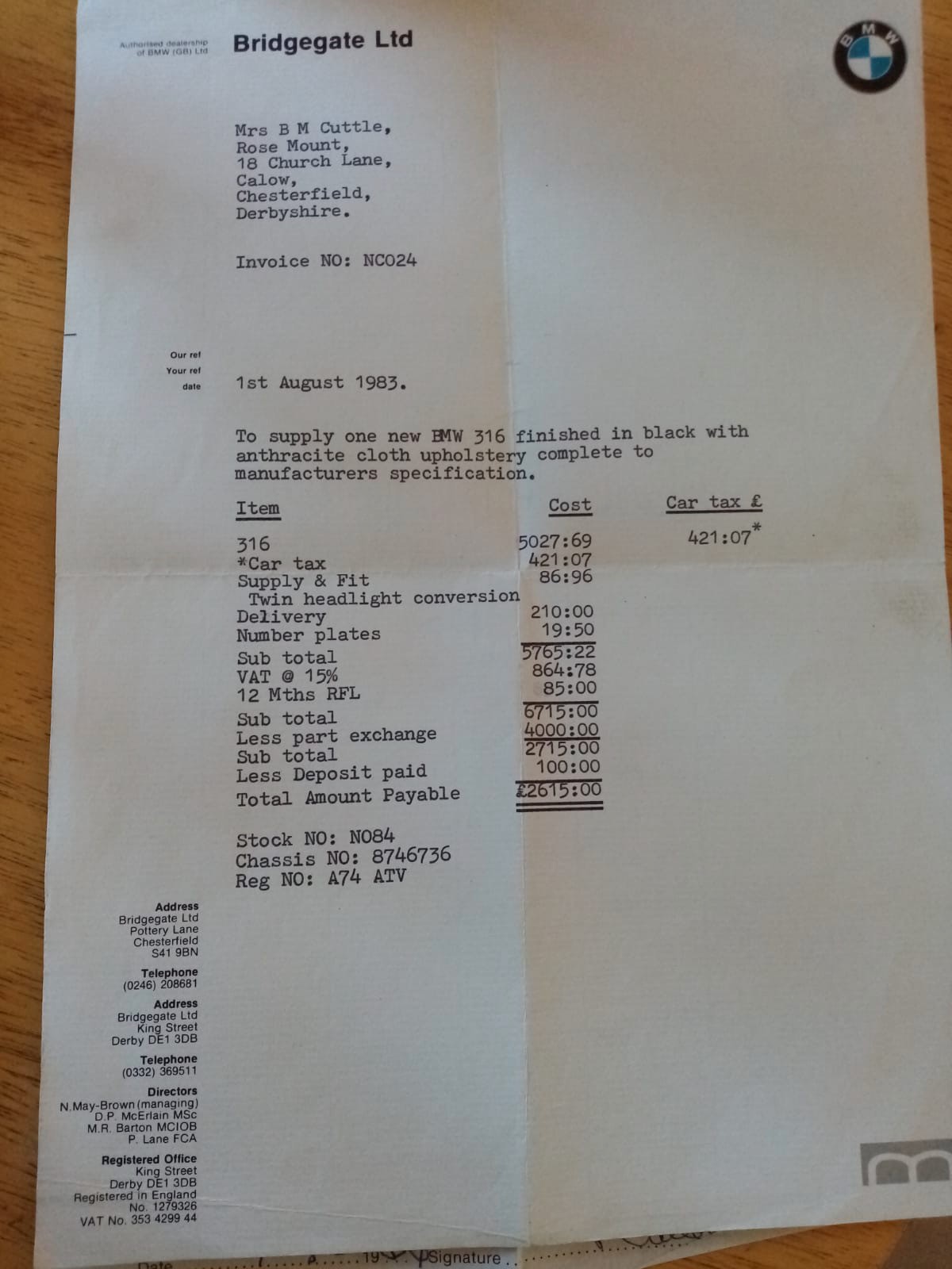 BMW, 316, E21 MODEL,1983, 92K MILES WITH THE 1,766cc ENGINE AND DOUBLE ROUND LIGHTS. ON ZV PLATES, BLACK WITH DARK VELOUR INTERIOR.