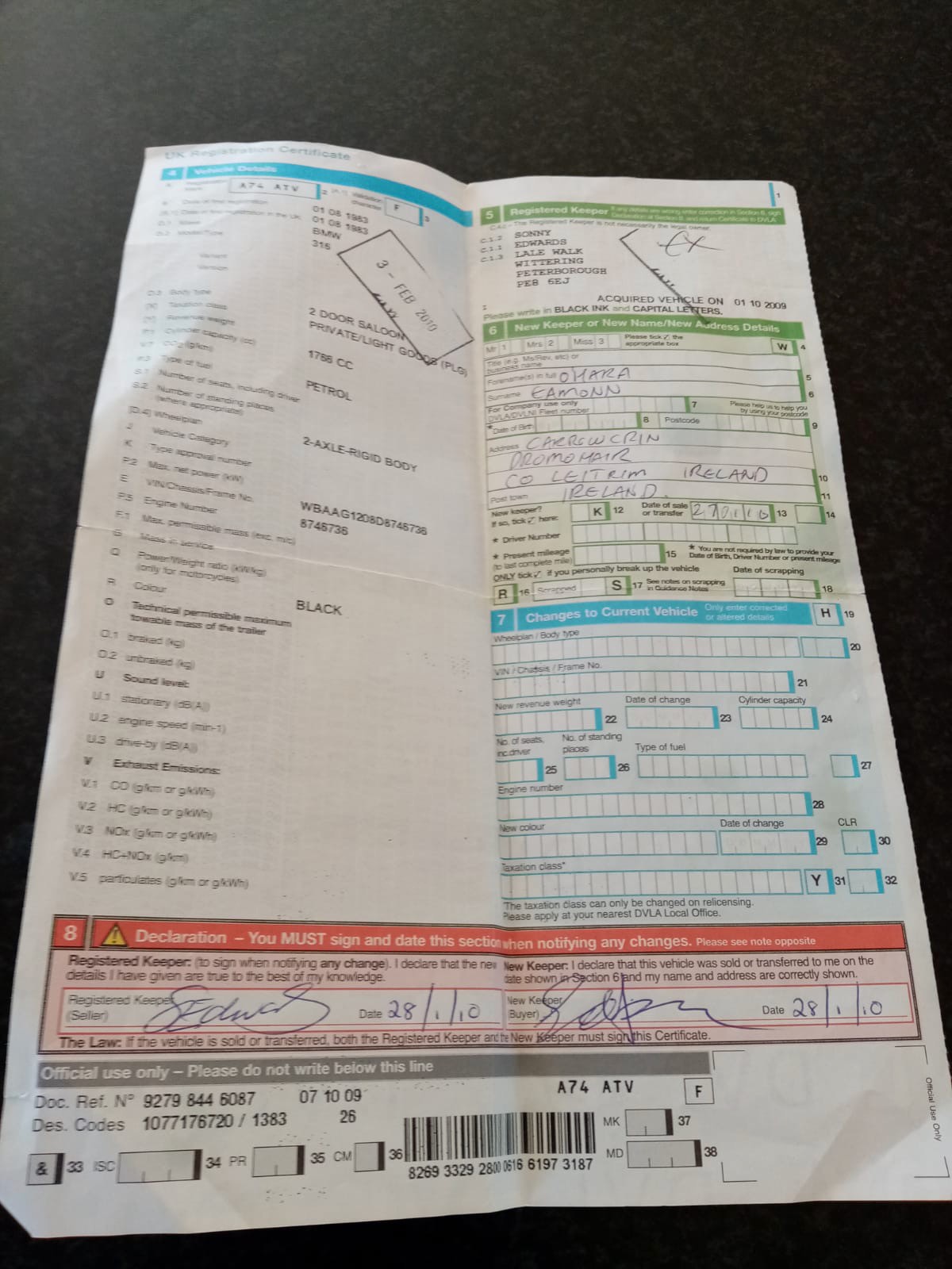 This car appears to be in good/excellent condition with good arches and rear boot in good order. The car was brought into Ireland in 2016 by the previous owner who recently passed away. It is a well looked example and is 'as original'. Now highly collectible and hard to find in this condition. Note the Irish log book has identified this car as and E30 model, this error has not been rectified by the previous owner.