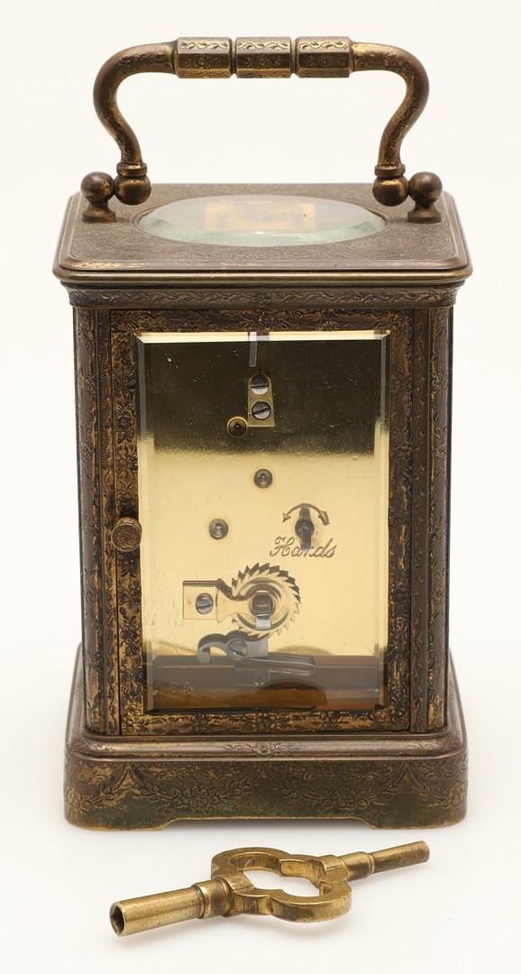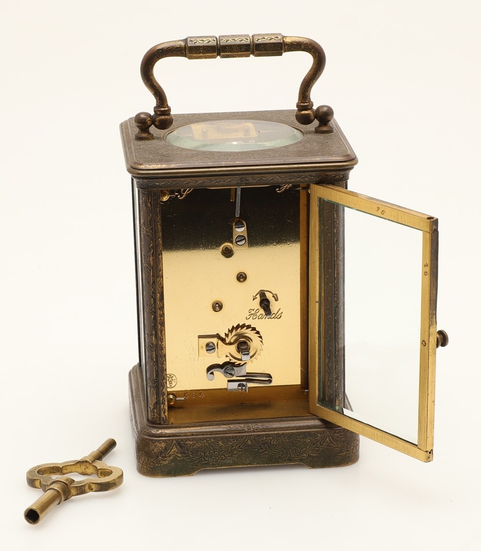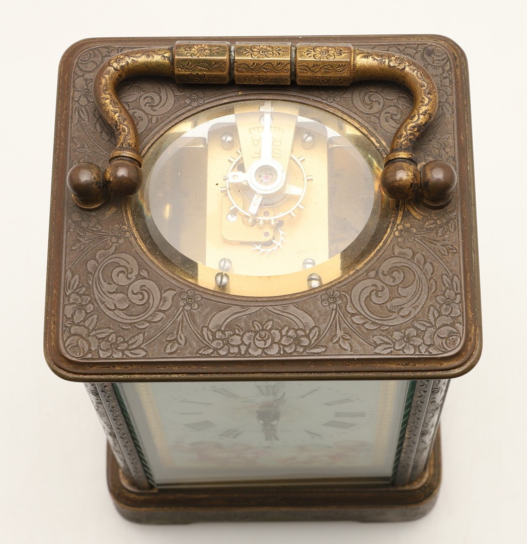Case dull, gilding partially worn on panels, winds and runs well, writing partially worn to dial, platform escapement most likely replaced.