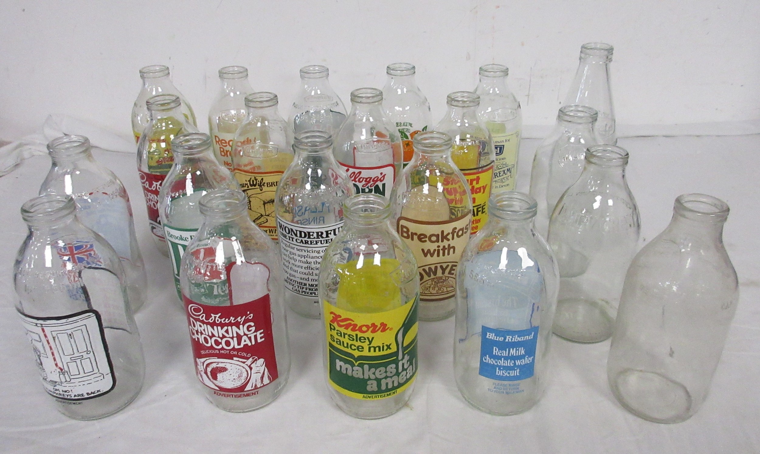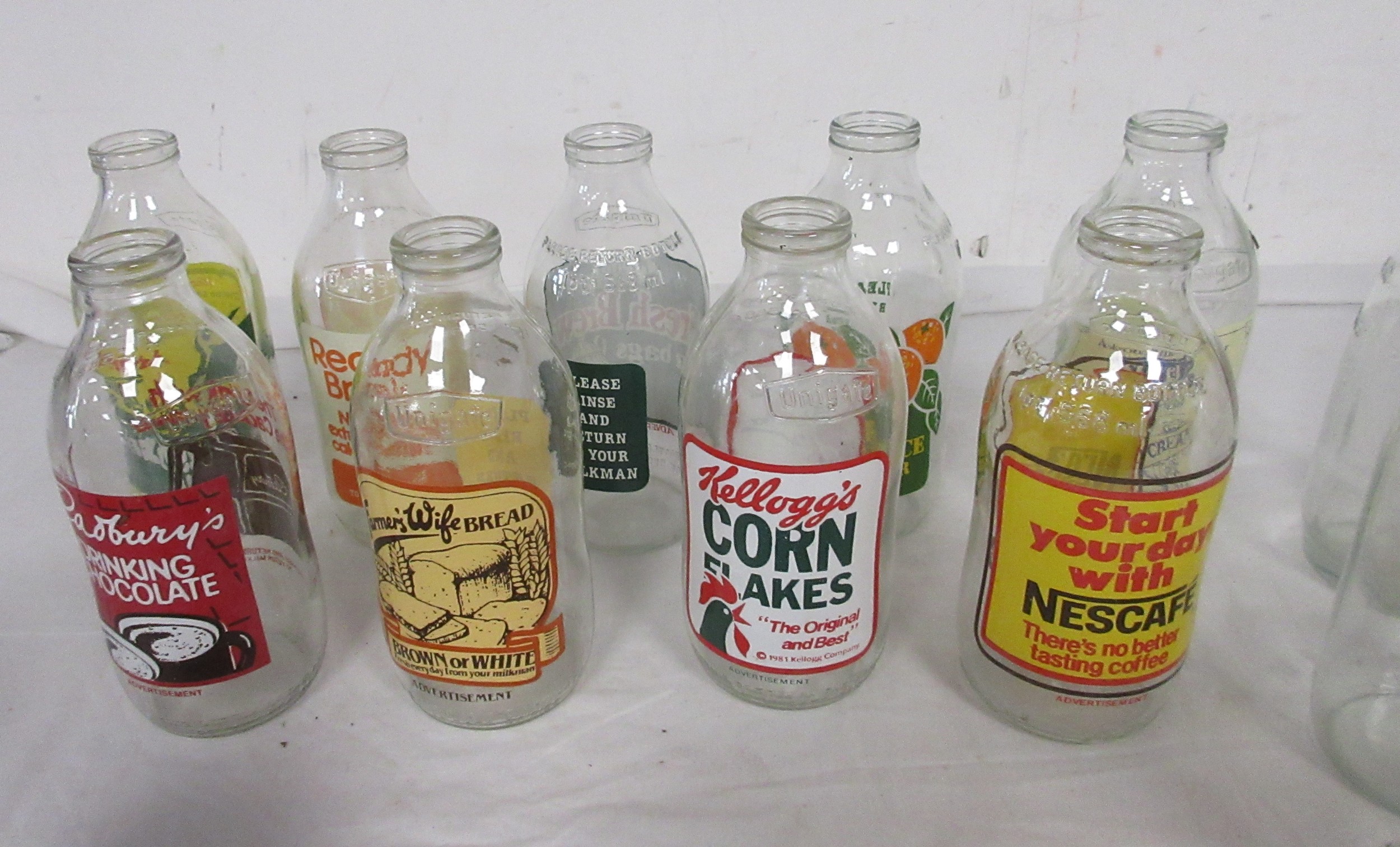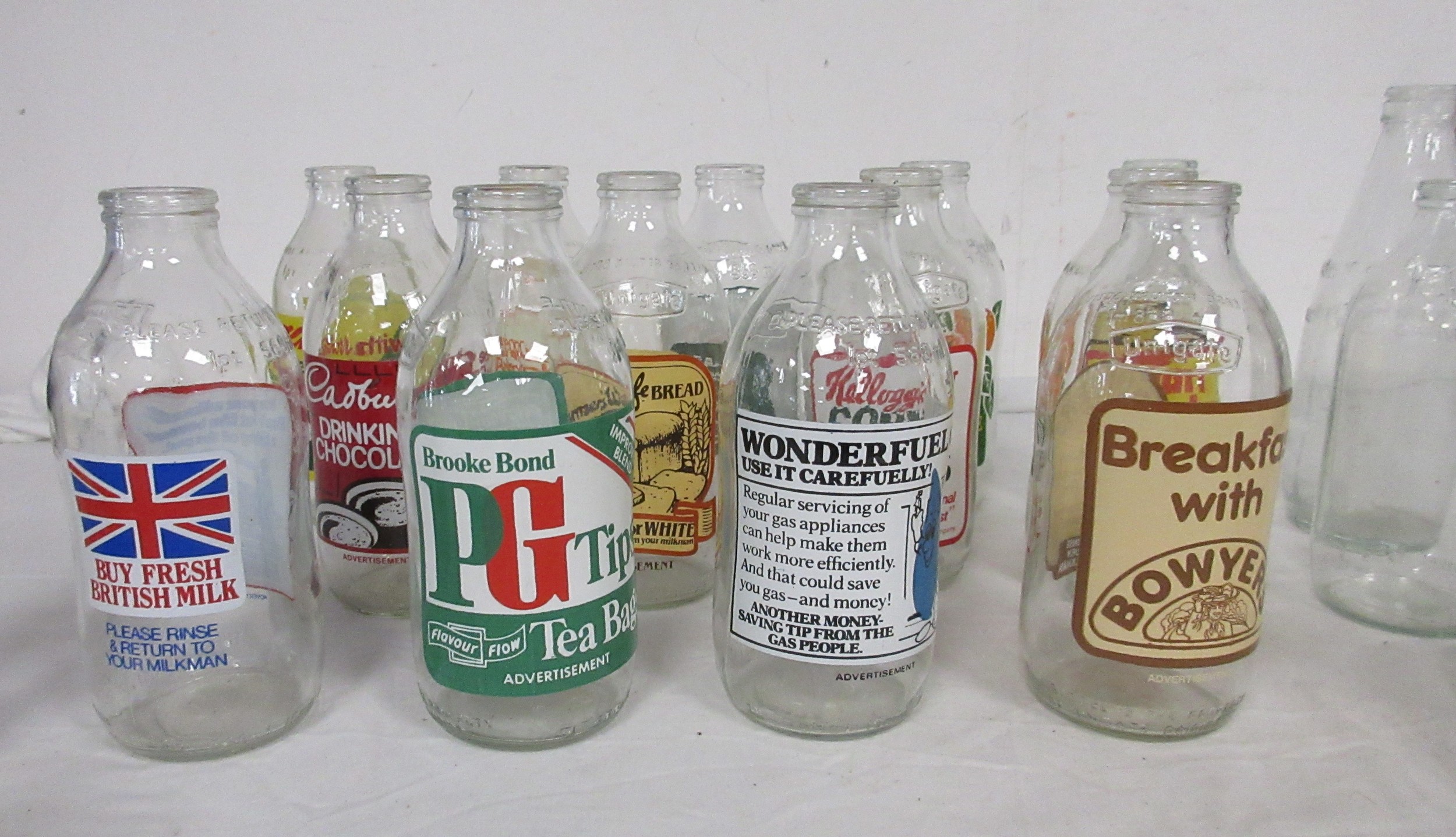 A selection of advertising milk bottles (17) plus 4 vintage milk bottles