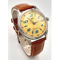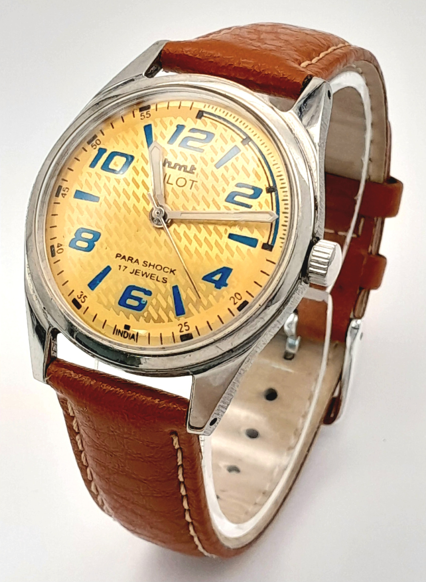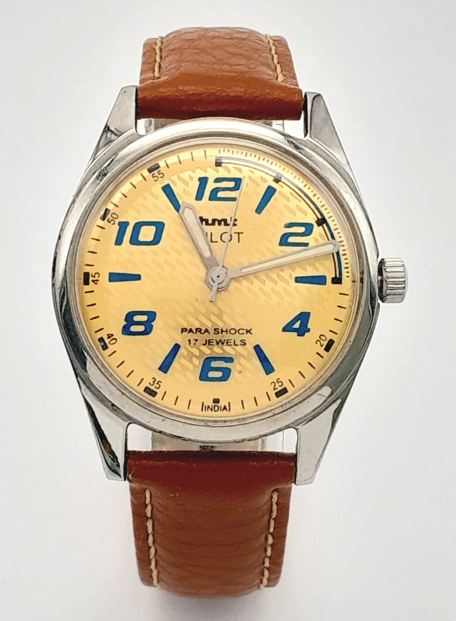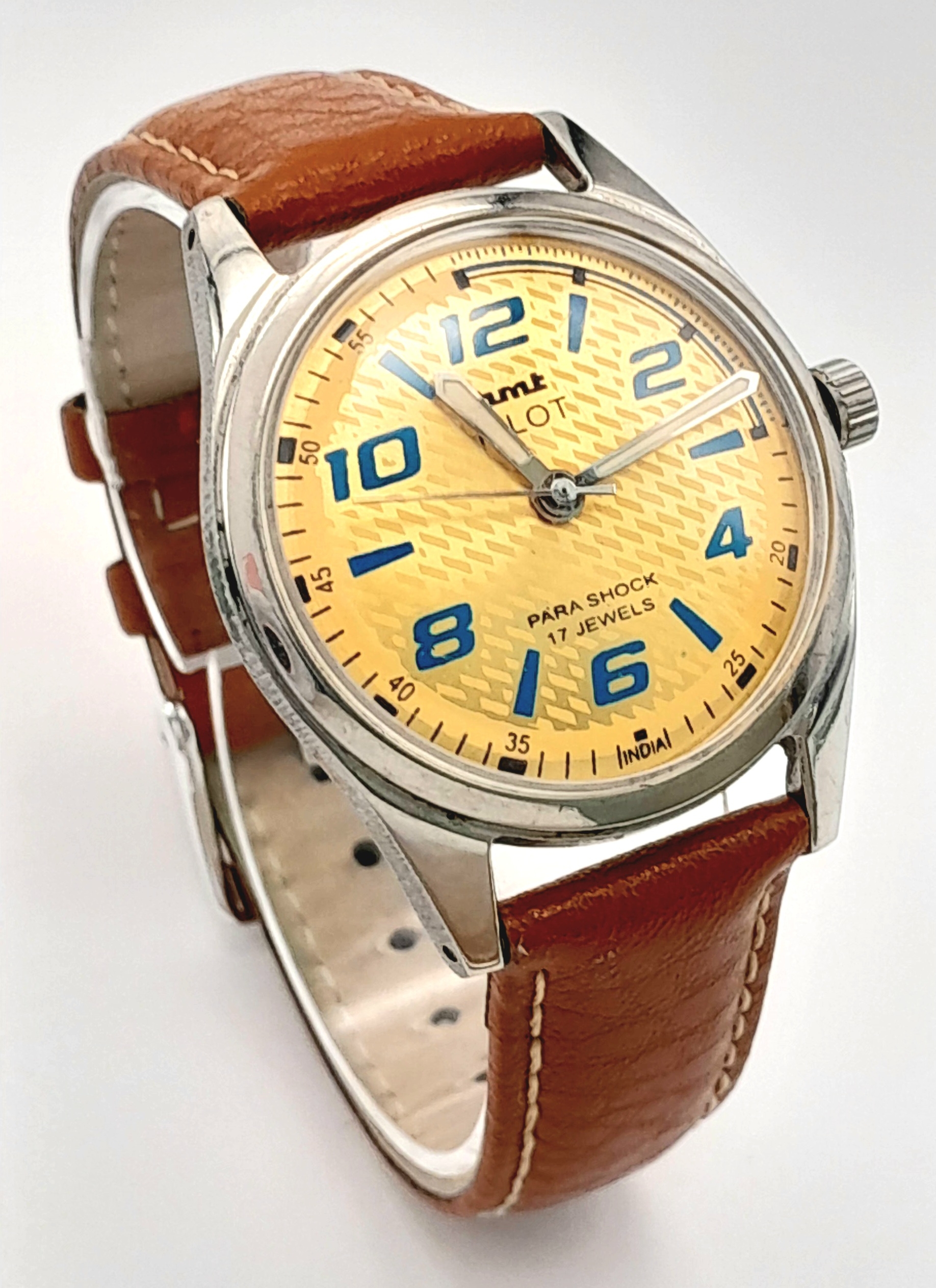 A VINTAGE HMT PILOT MANUAL WIND WATCH. PARA SHOCK 17 JEWELLS ON BROWN LEATHER STRAP . Ref: S/A 1495 - 2