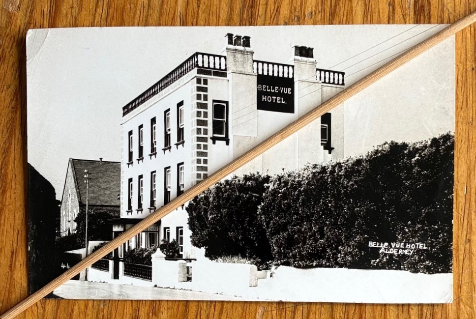 Real photographic postcard by Norman Grut Guernsey - Belle Vue Hotel Alderney.