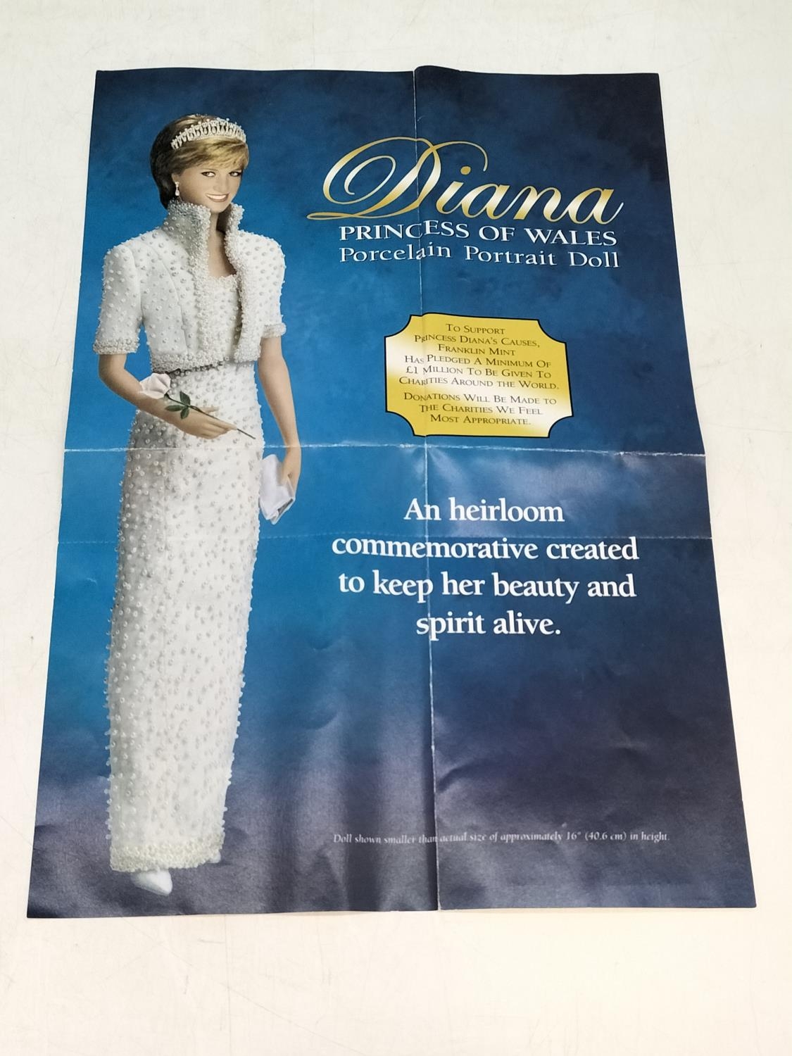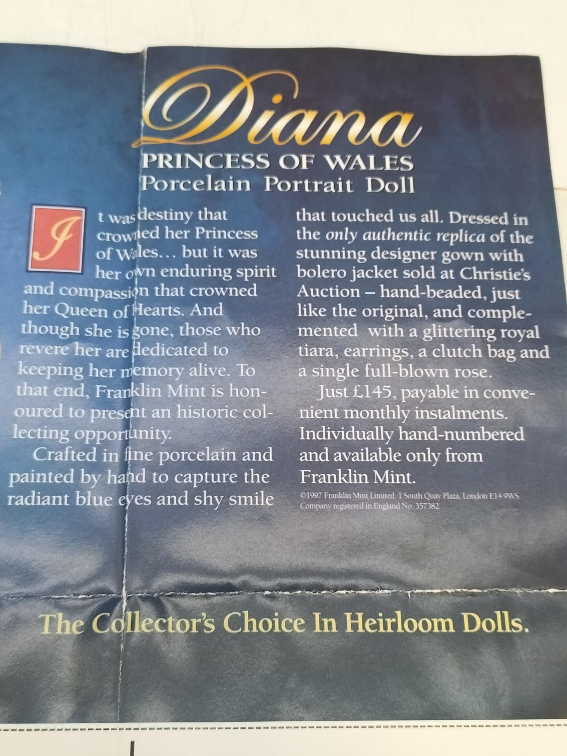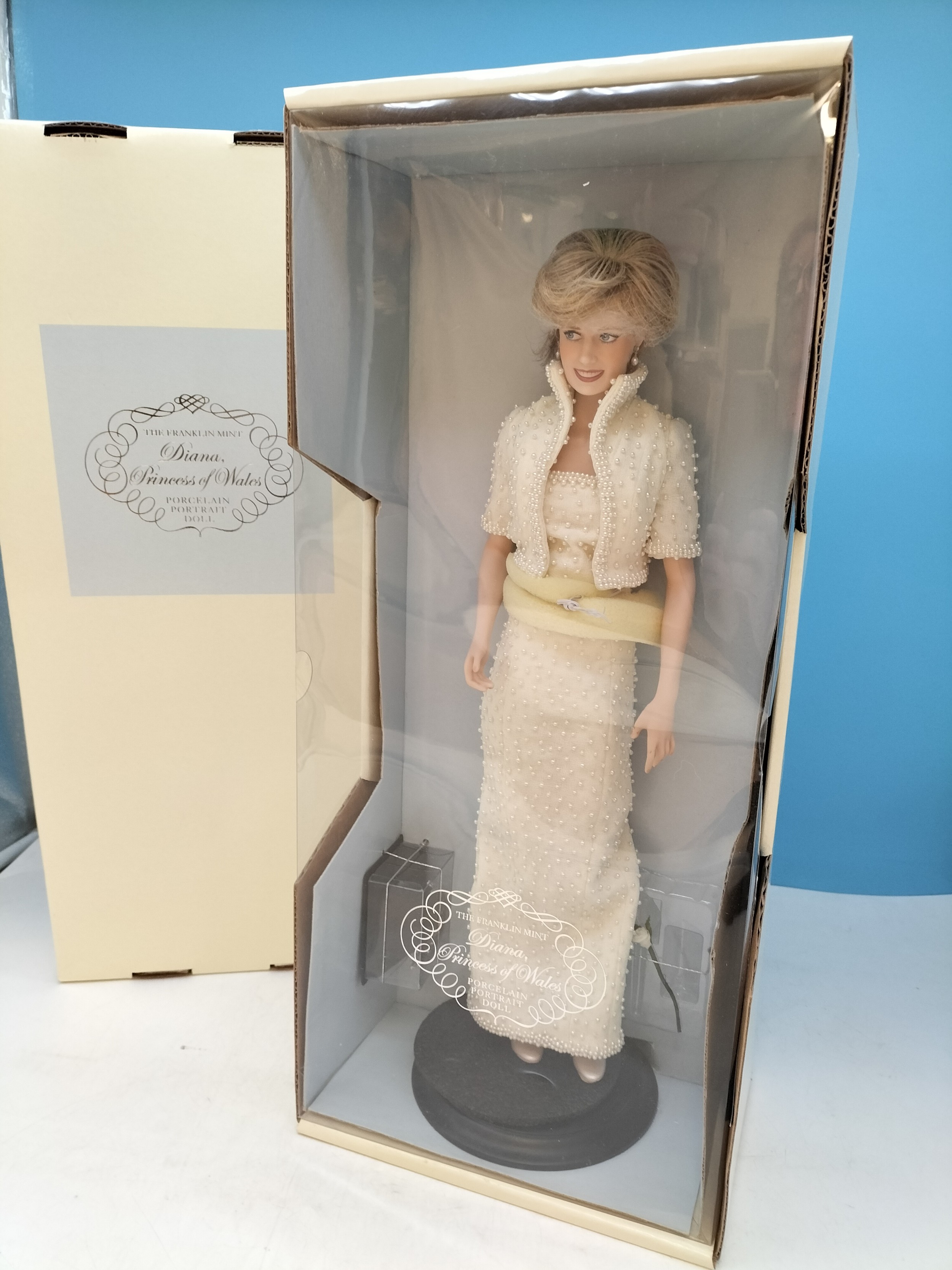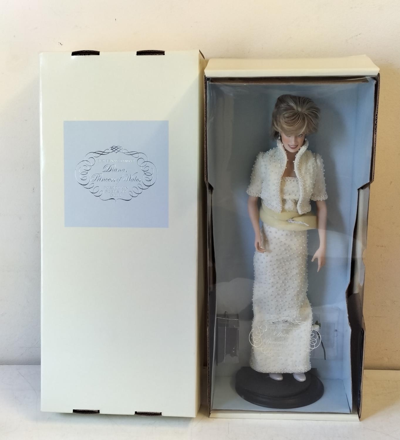 Boxed Franklin Mint 'Diana, Princess of Wales' Porcelain Portrait Doll. Doll on Stand 46cm Tall.