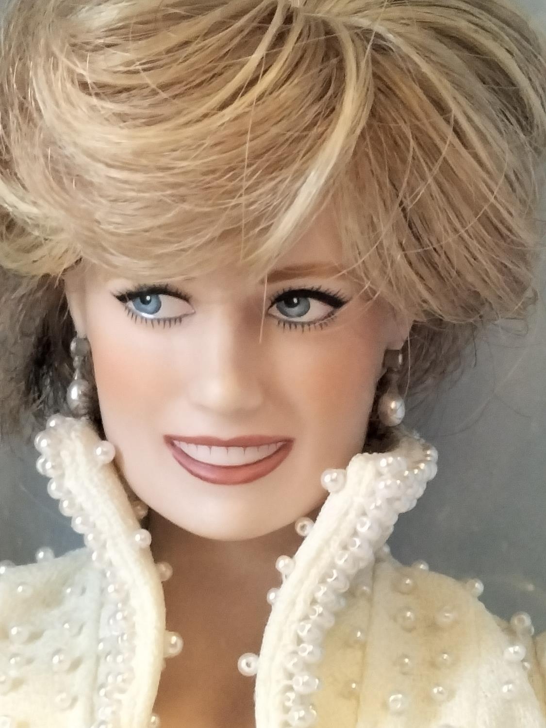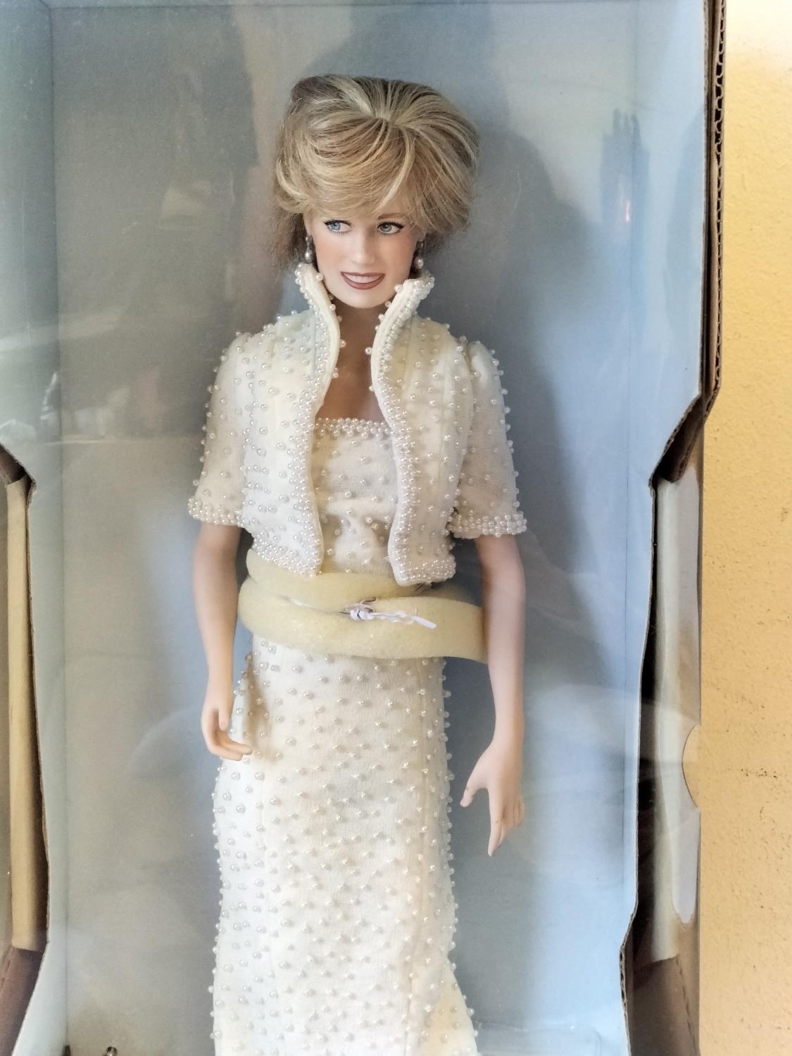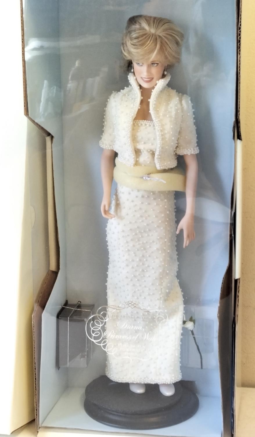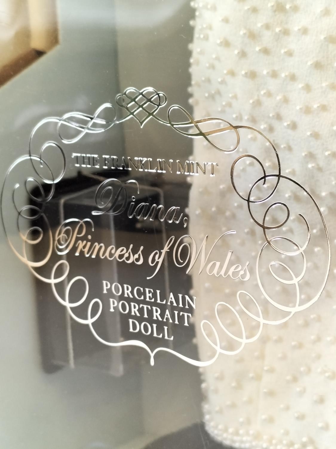 Boxed Franklin Mint 'Diana, Princess of Wales' Porcelain Portrait Doll. Doll on Stand 46cm Tall.