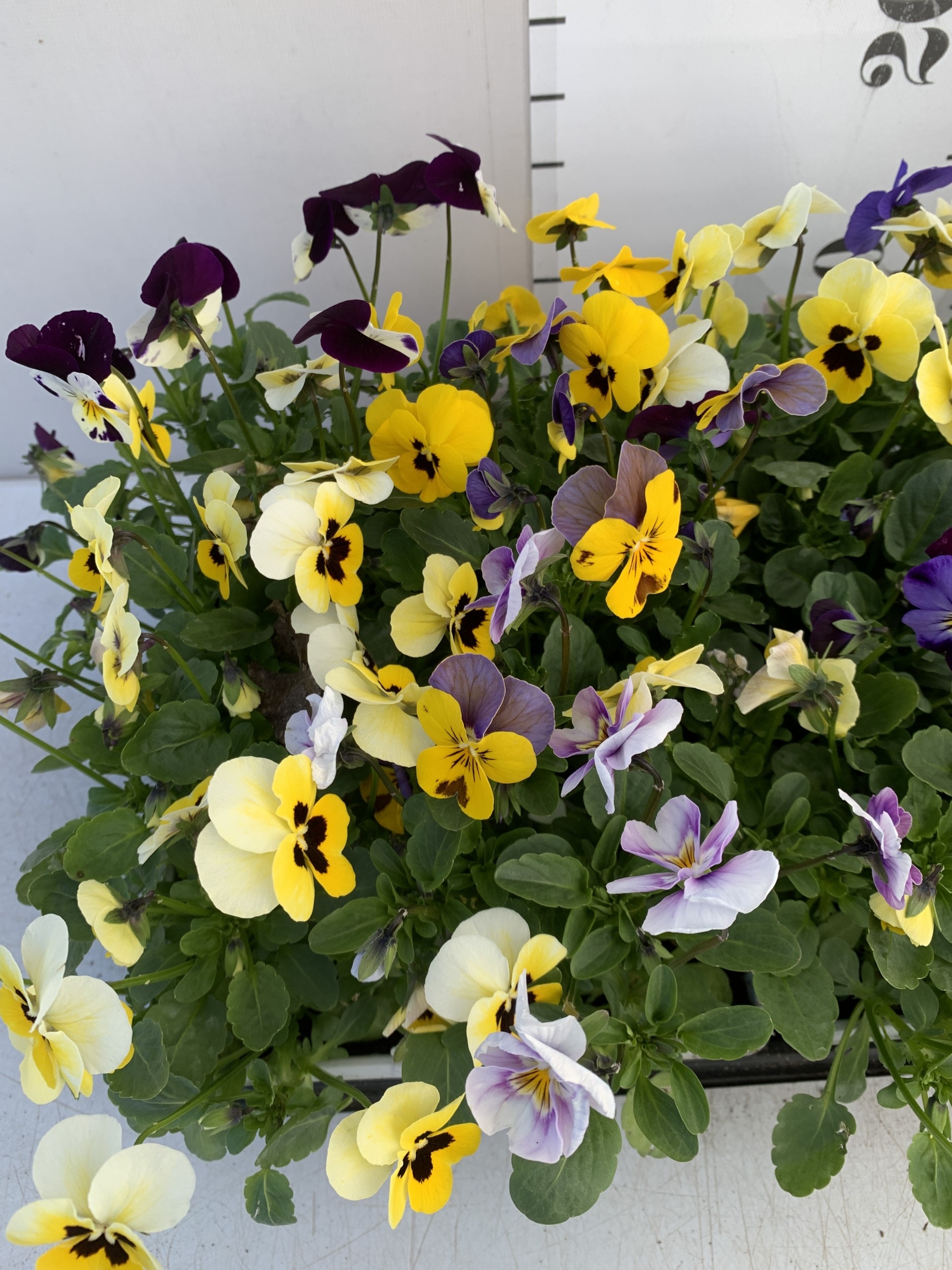 EIGHTEEN MIXED COLOUR SORBET VIOLAS ON THREE TRAYS. TO BE SOLD FOR THE EIGHTEEN