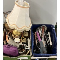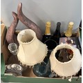 CARTON - PAIR OF ONYX STYLE TABLE LAMPS, SHIPS DECANTER, DARTINGTON GLASSES, BRANDY BALLOON