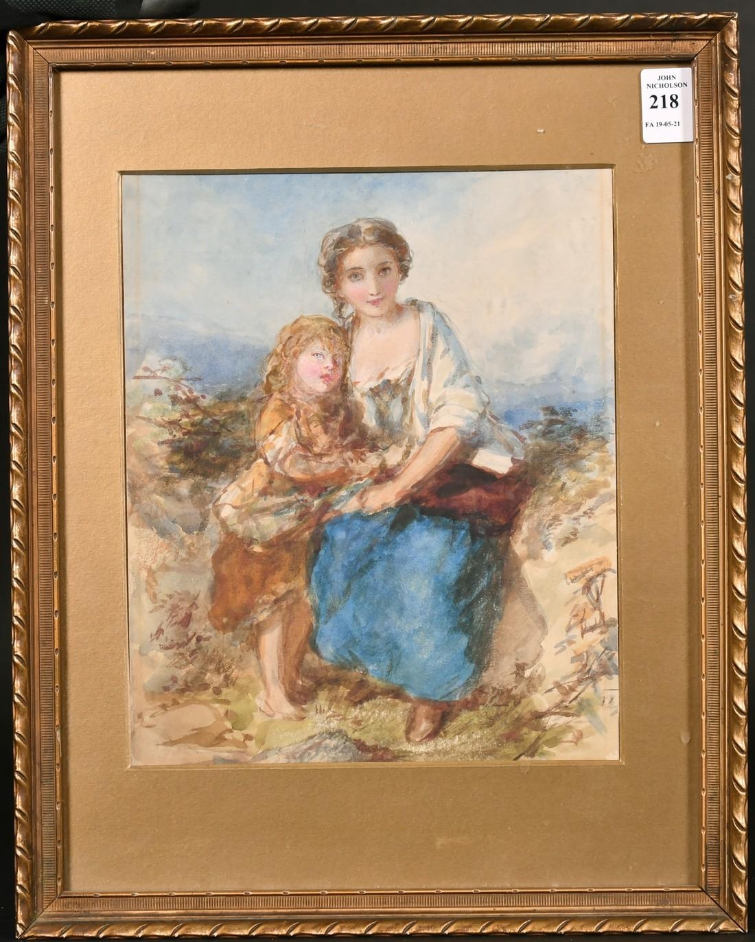 After James John Hill (1811-1882) British, A mother and child in an outdoor setting, watercolour, 10" x 8".