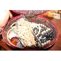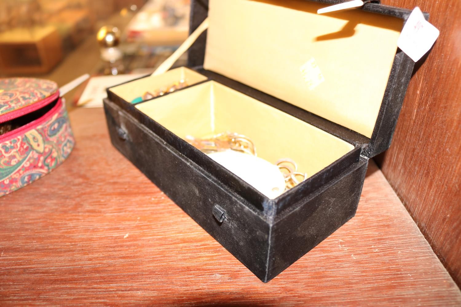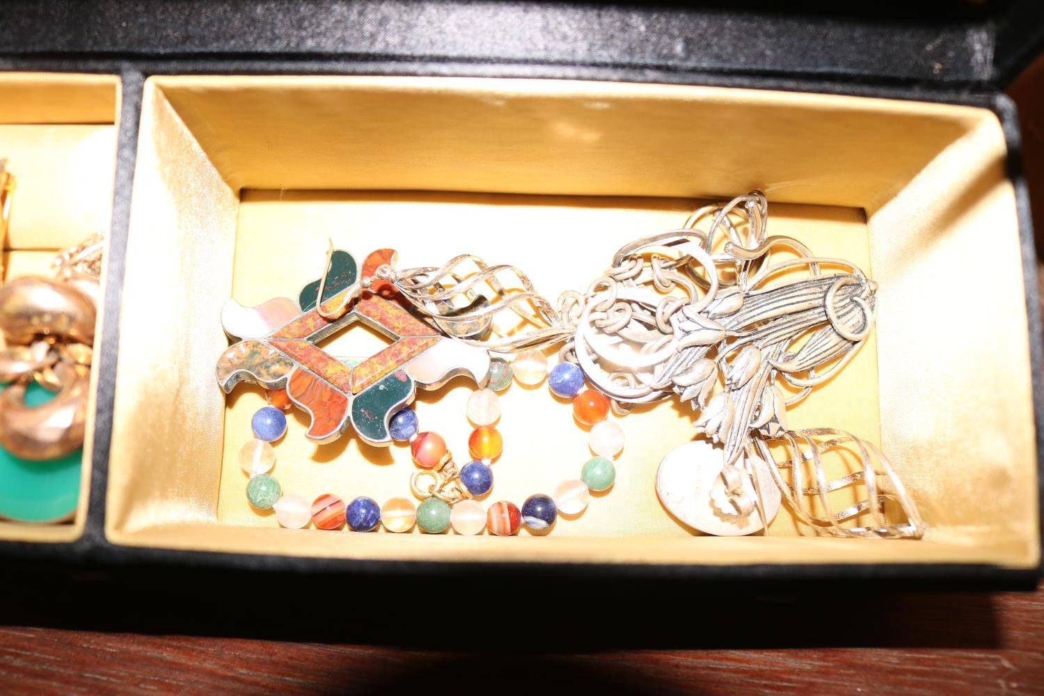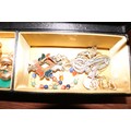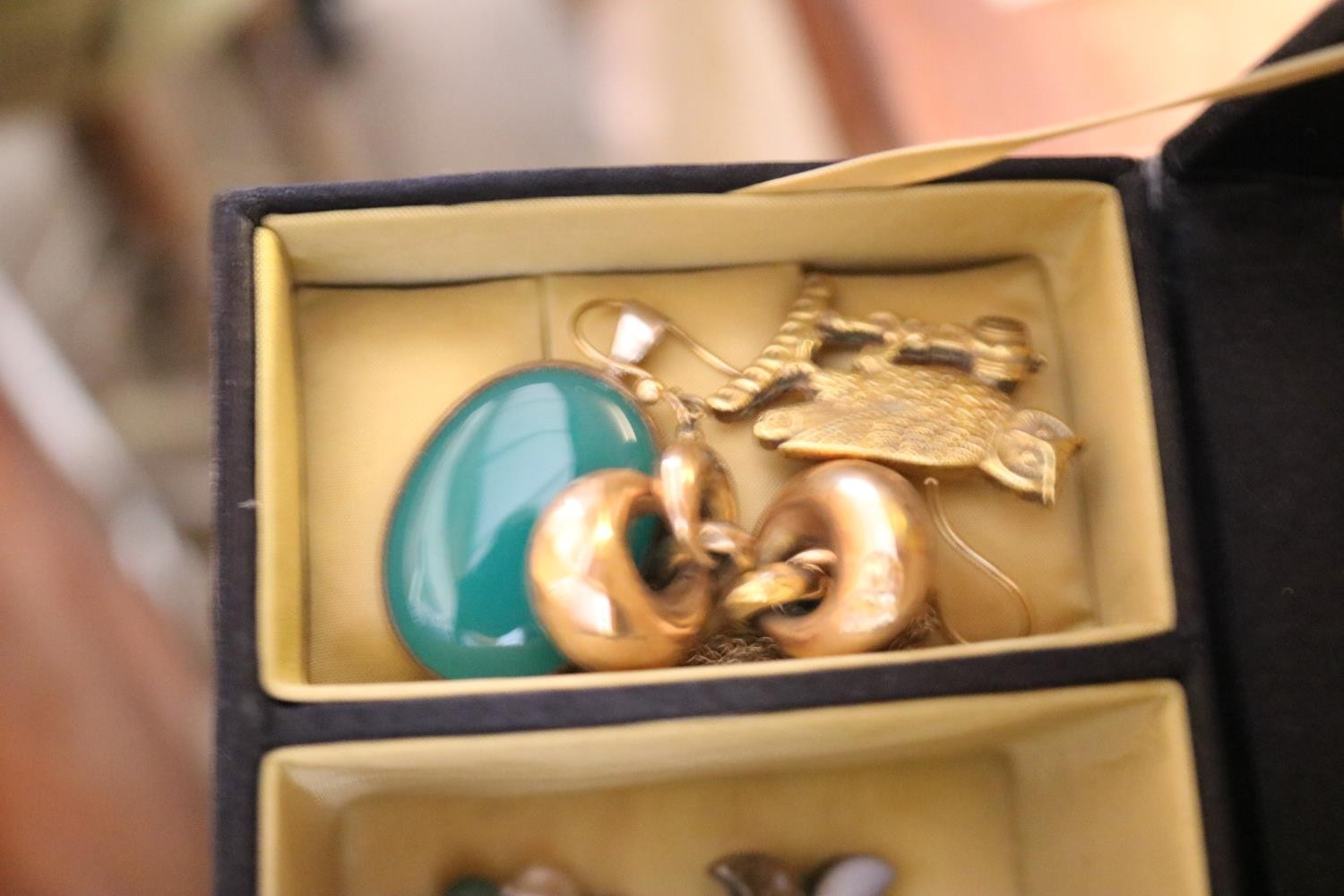 Jewellery box, incl brooches, owl, earrings, etc