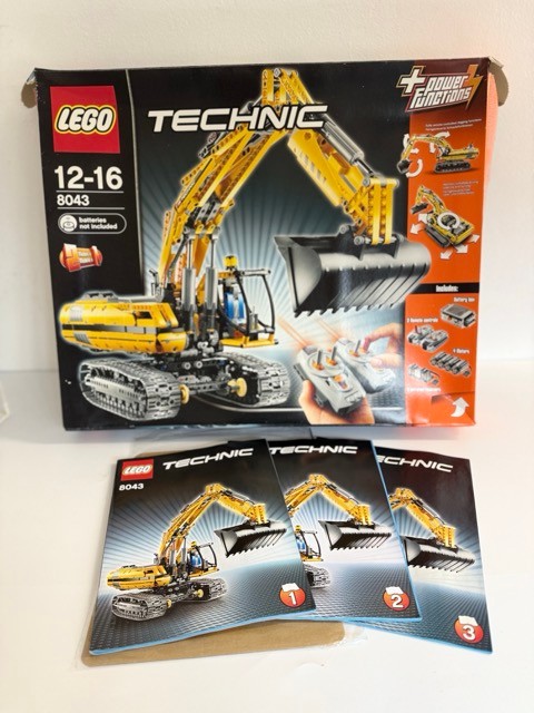 Lego TECHNIC Motorised Excavator - Set 8043, Built with instructions, missing remote control. (Built a little dusty, Box - Poor, 2750g).