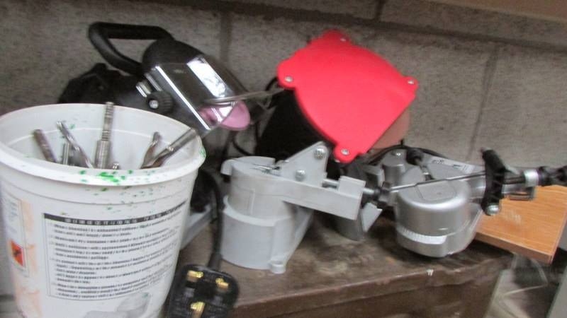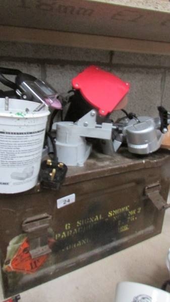 A metal MOD ammo box, two drill/saw sharpeners and a tub of good quality drill bits.