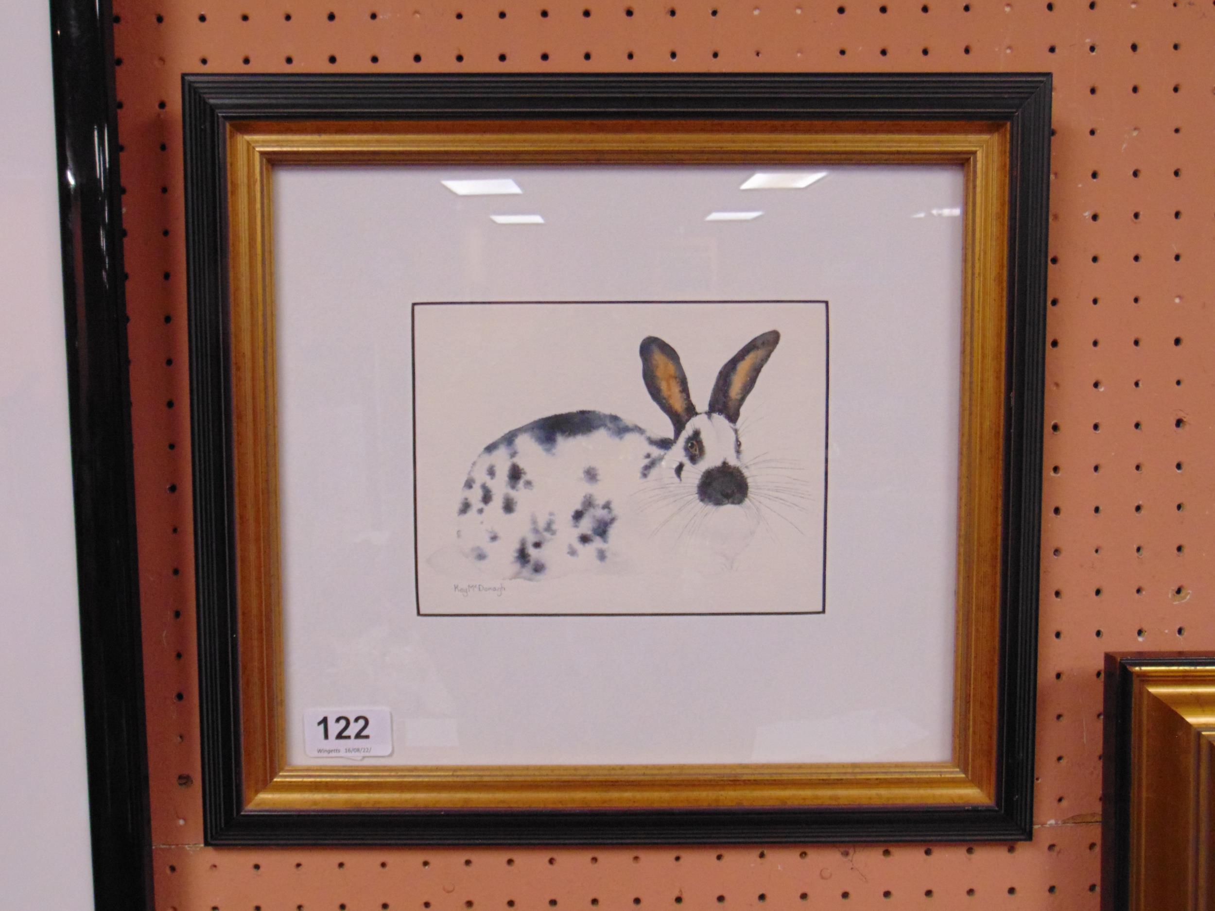 Kay McDonagh, watercolour, black and white rabbit, signed lower left, 5.25 x 7".
