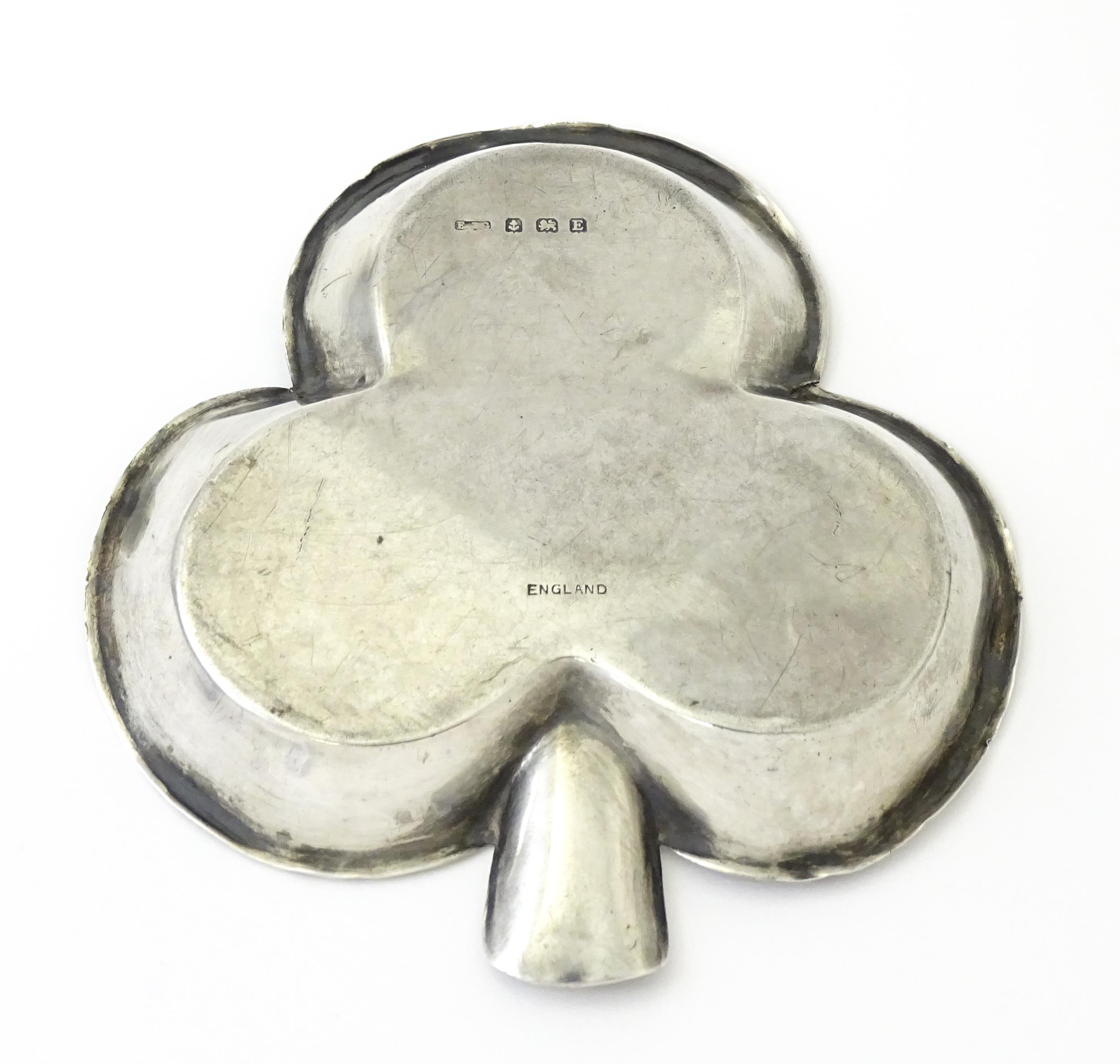 A silver dish of clover / club form hallmarked Birmingham 1929. Approx. 4" long