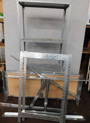 Workbench frame with small shelving unit