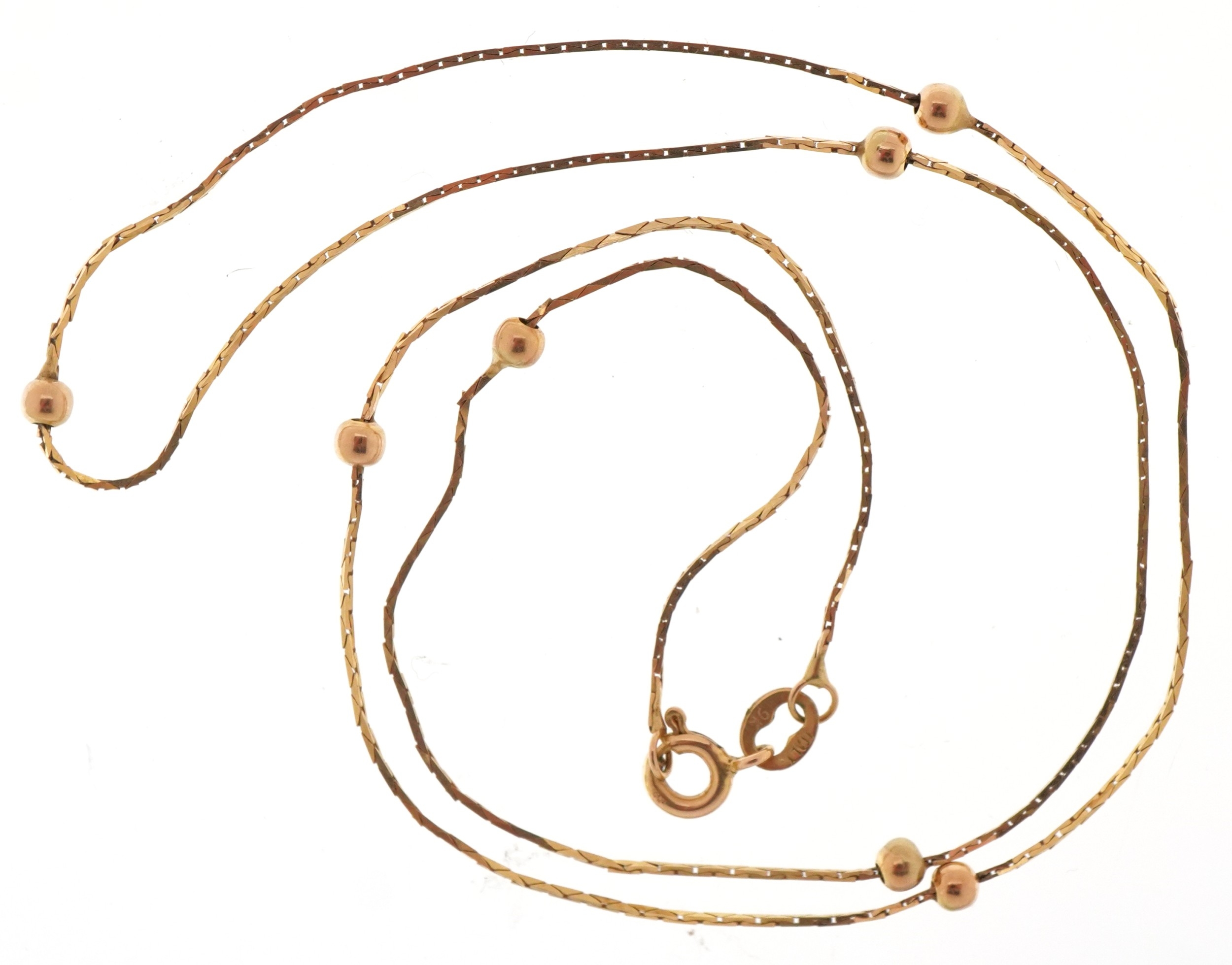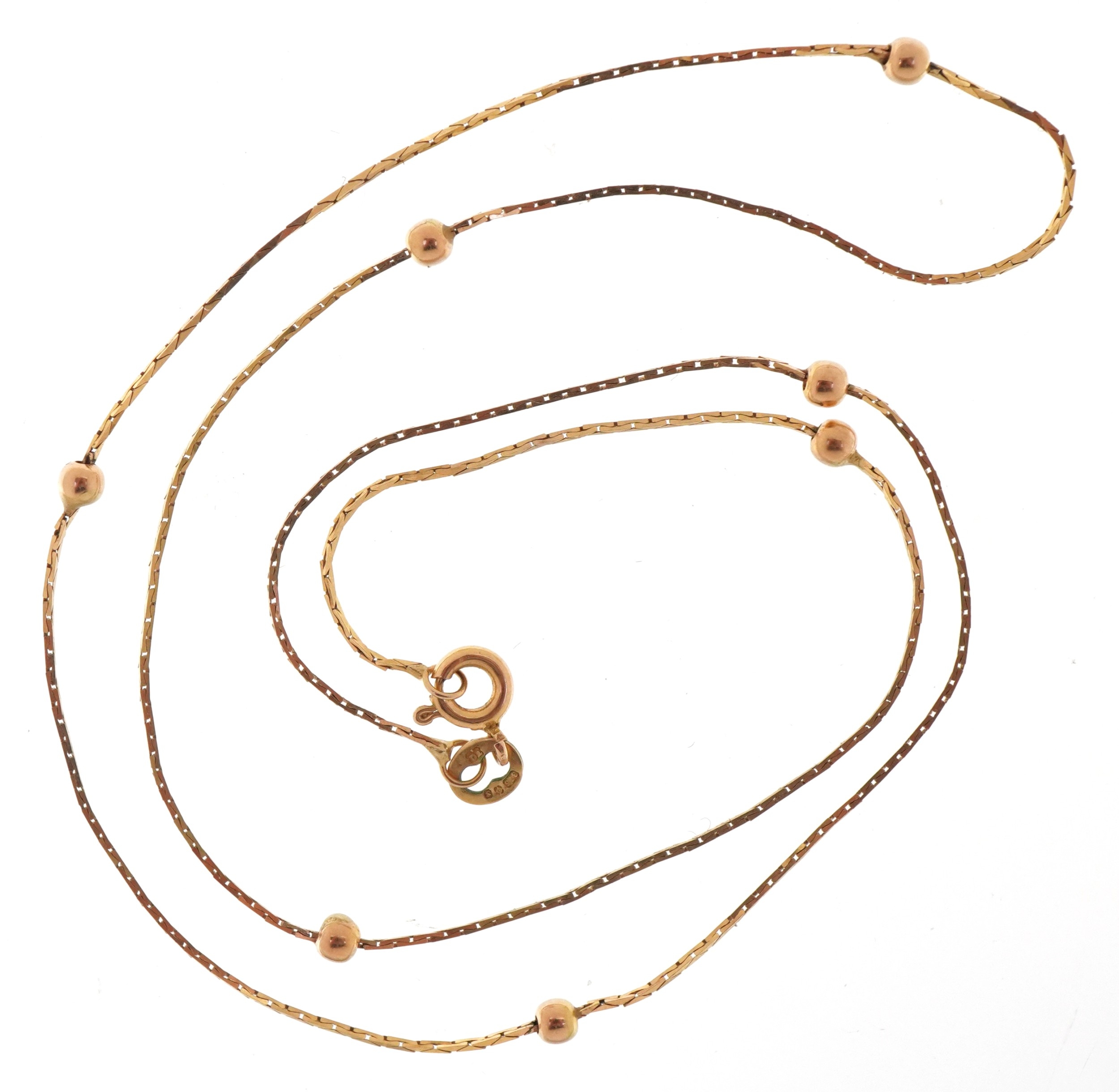 A 9ct gold ball link necklace, 42cm high in length, 1.6g.