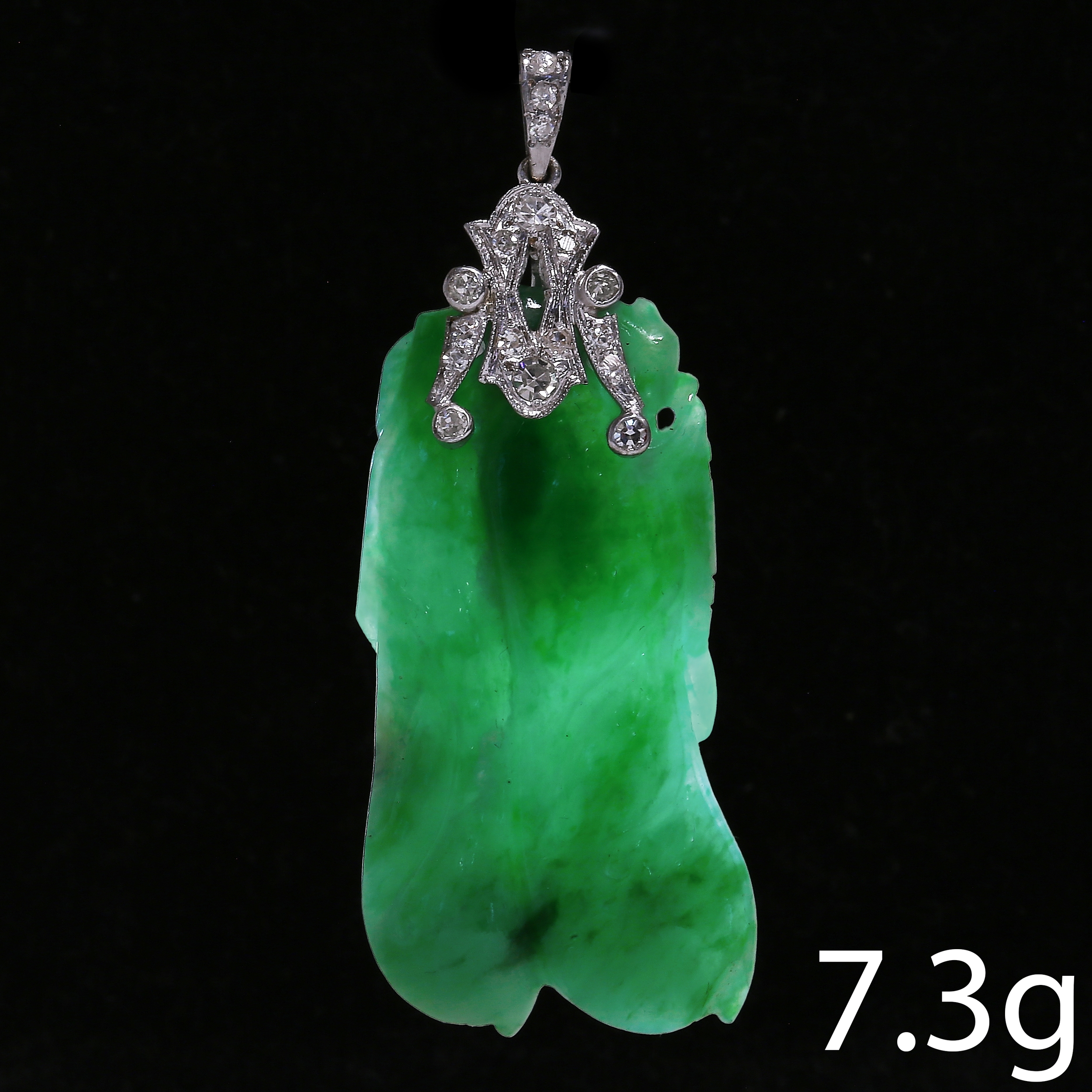 CHINESE CARVED JADE AND DIAMOND PENDANT