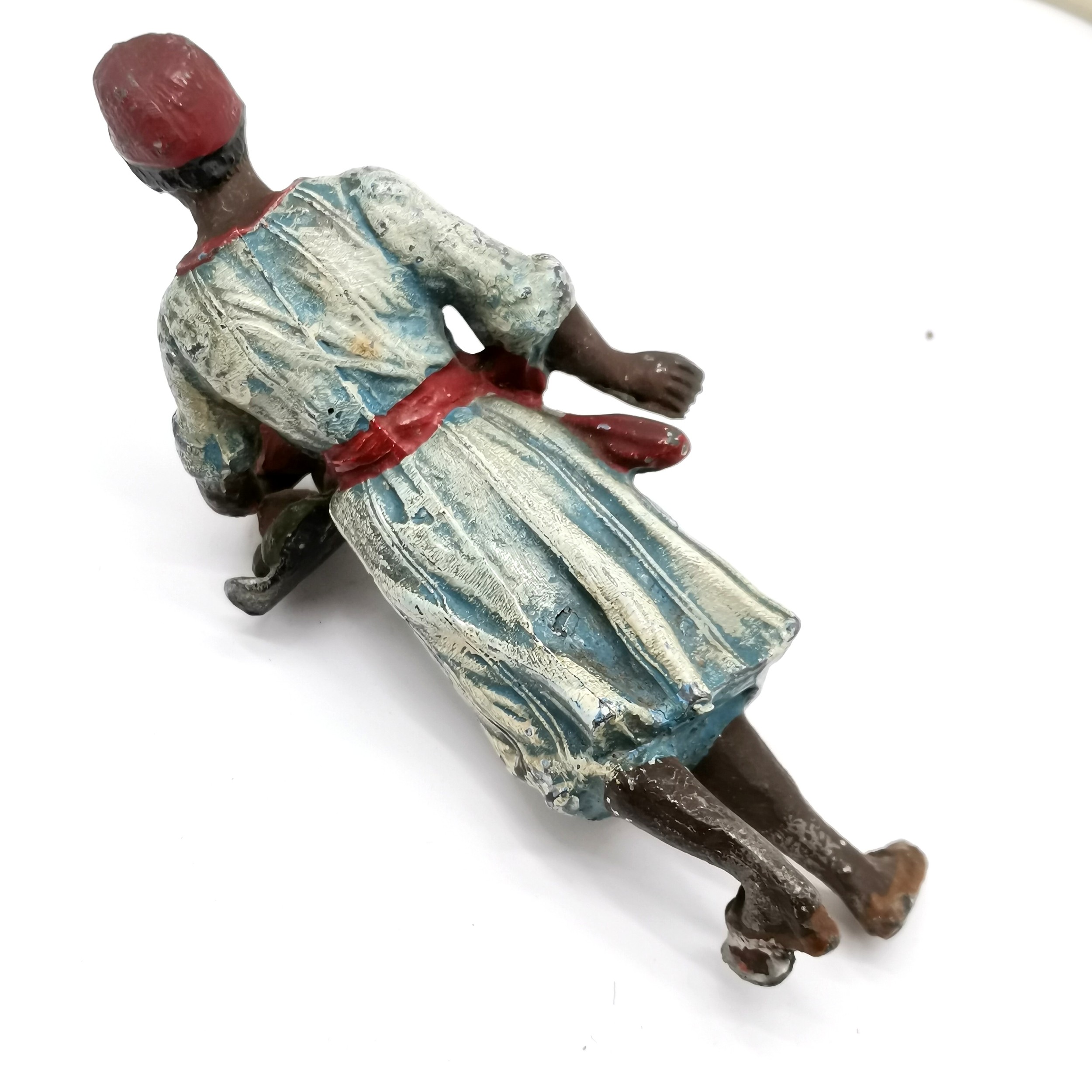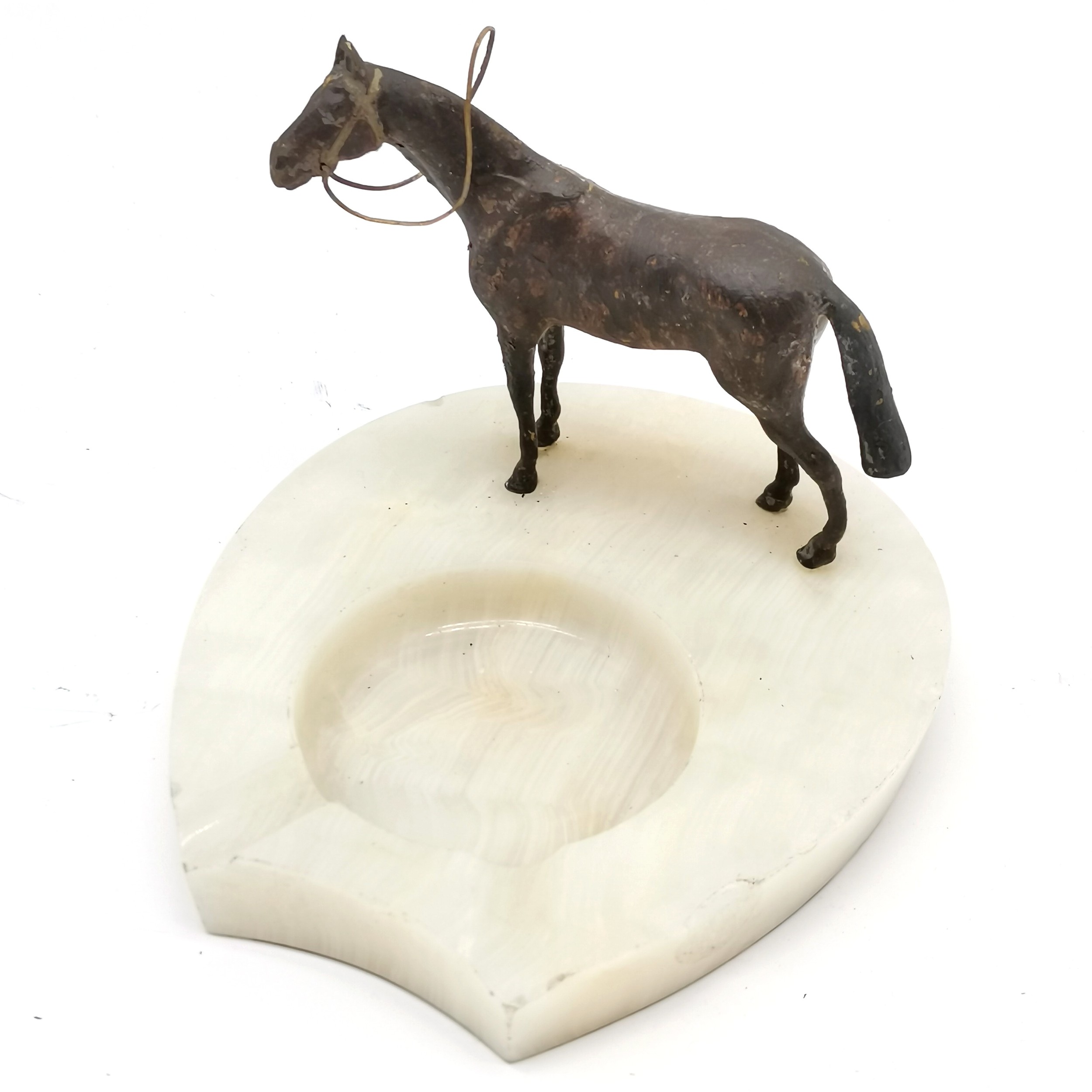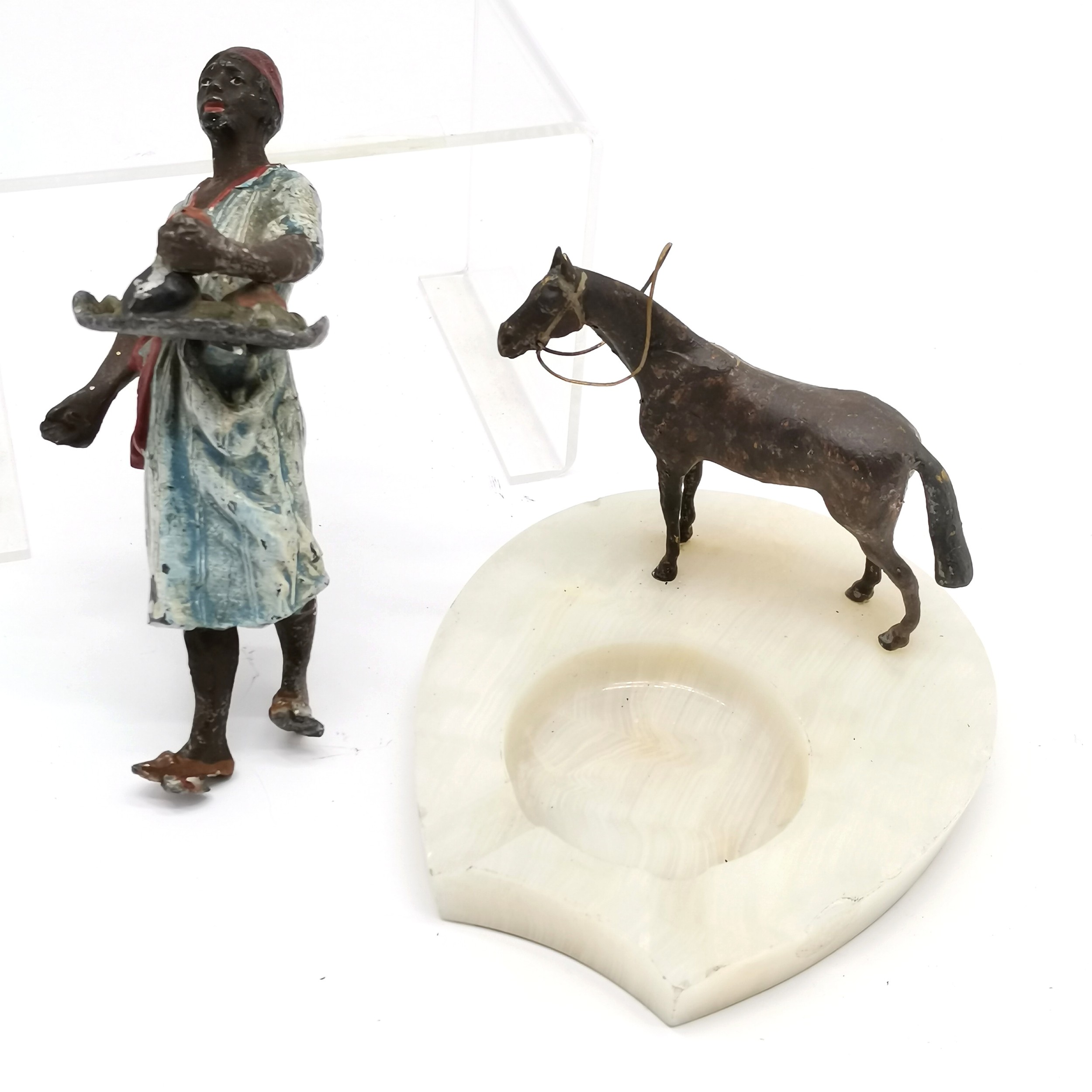 Asprey cold painted bronze figure of a horse on an onyx horseshoe shaped base (13cm x 11.5cm) t/w antique blackamoor figure ~ both slight a/f