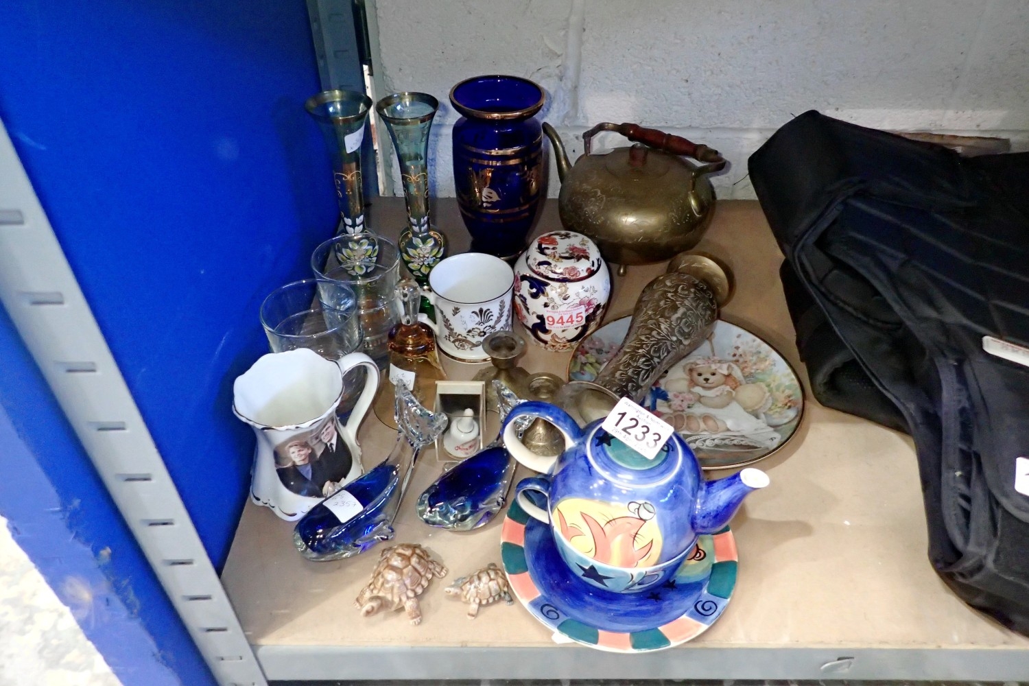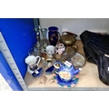 Quantity of mixed ceramics and three pieces of Indian brass. Not available for in-house P&P