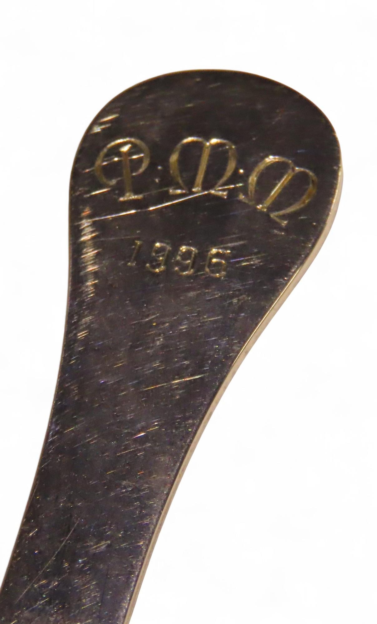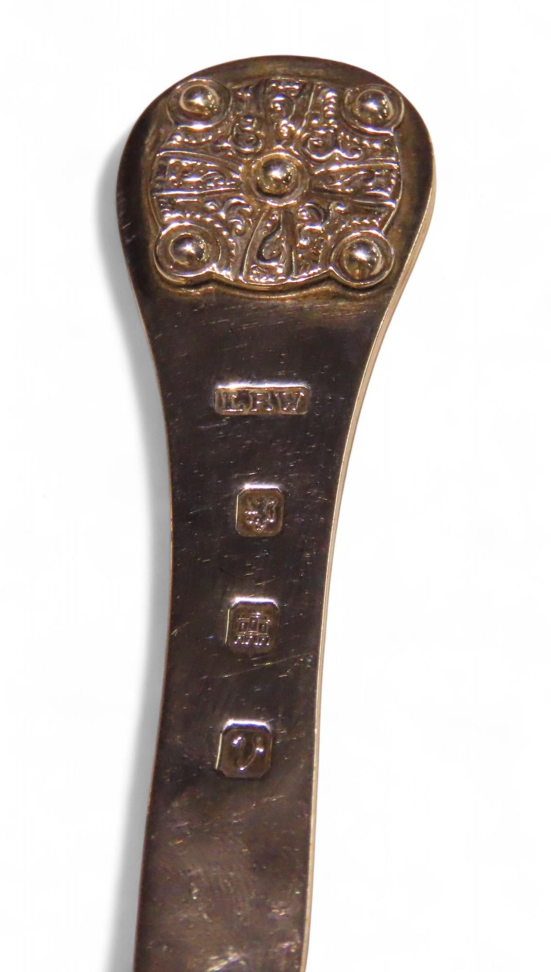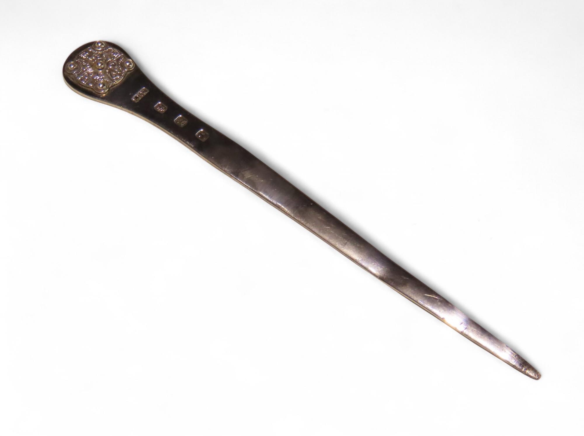 A Scottish silver letter opener, possibly Lawrence R Watson & Co, Edinburgh 1951, the finial with cast celtic roundel, 10cm, 42gms