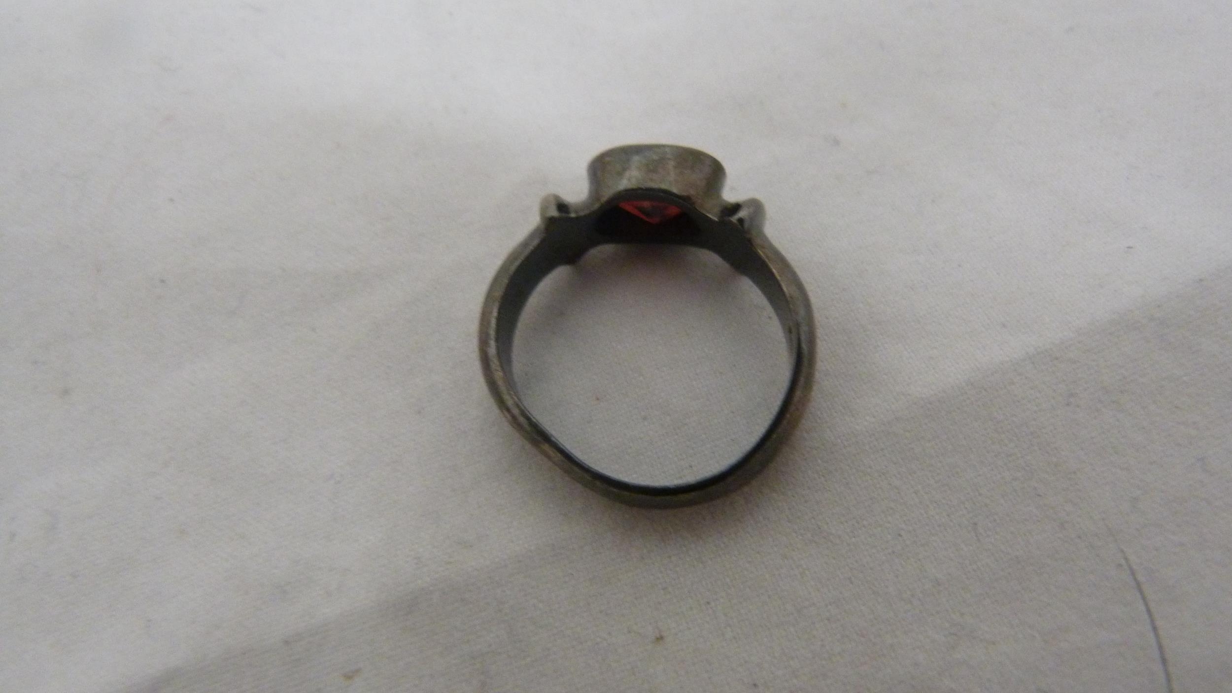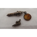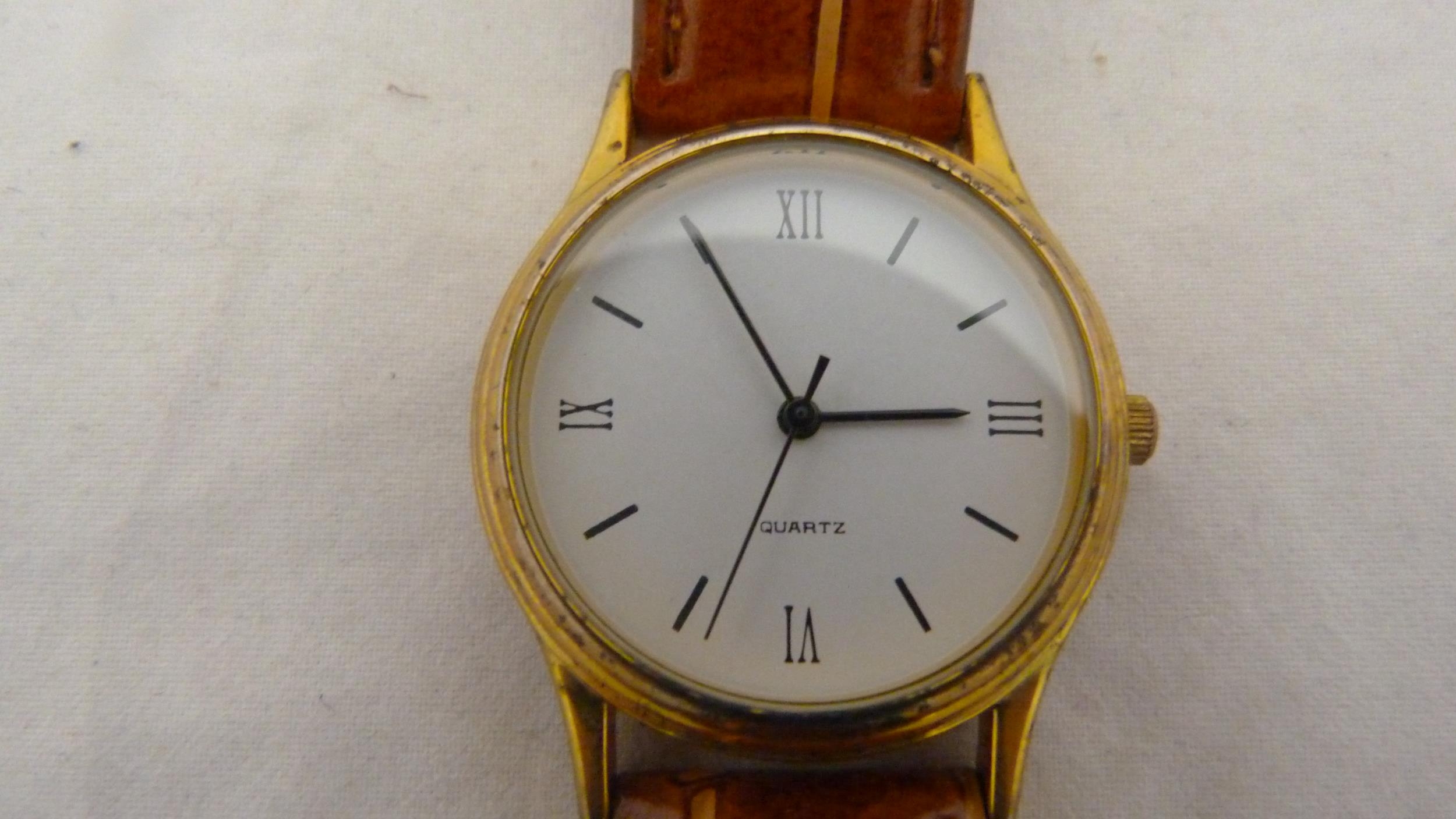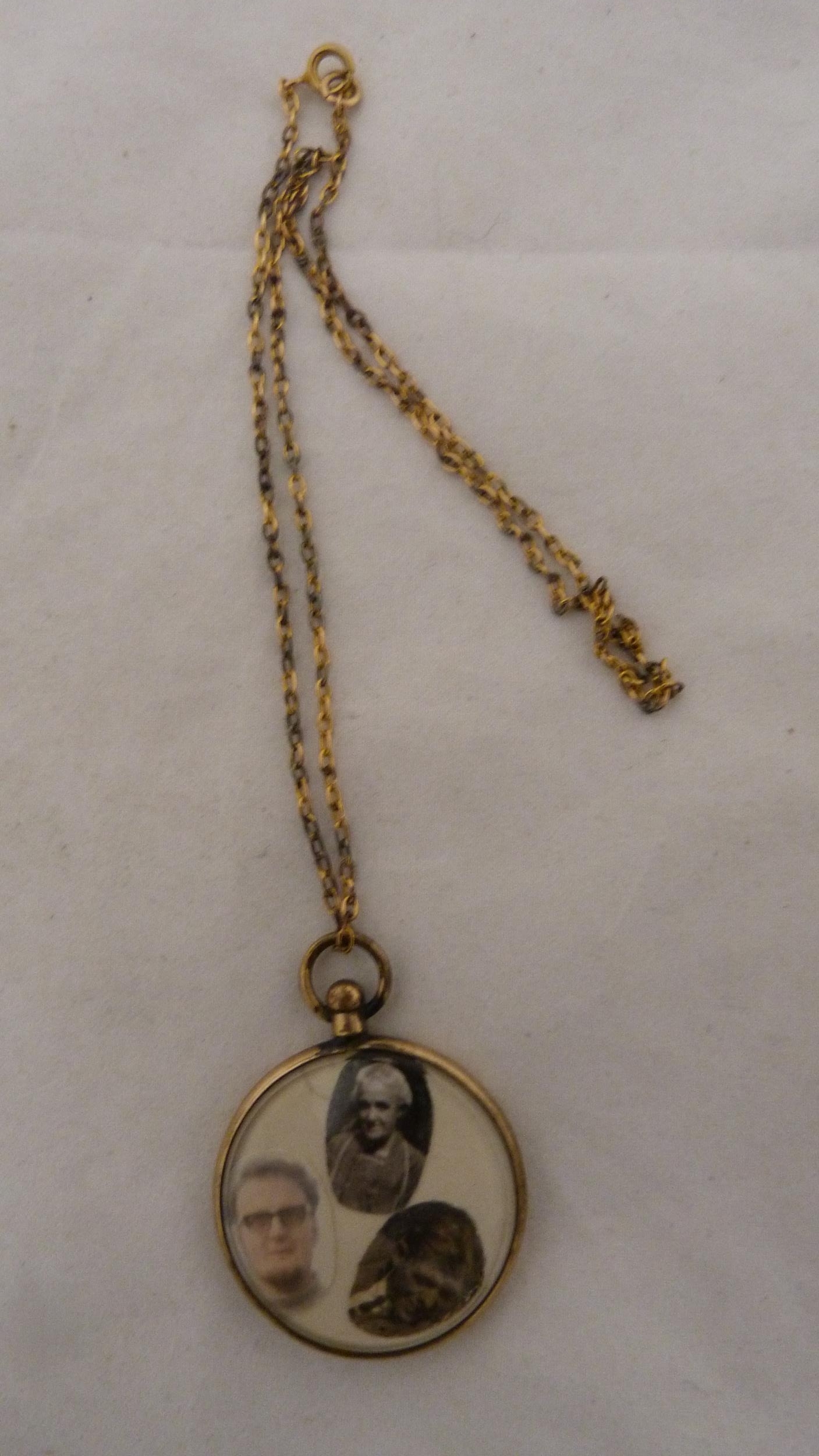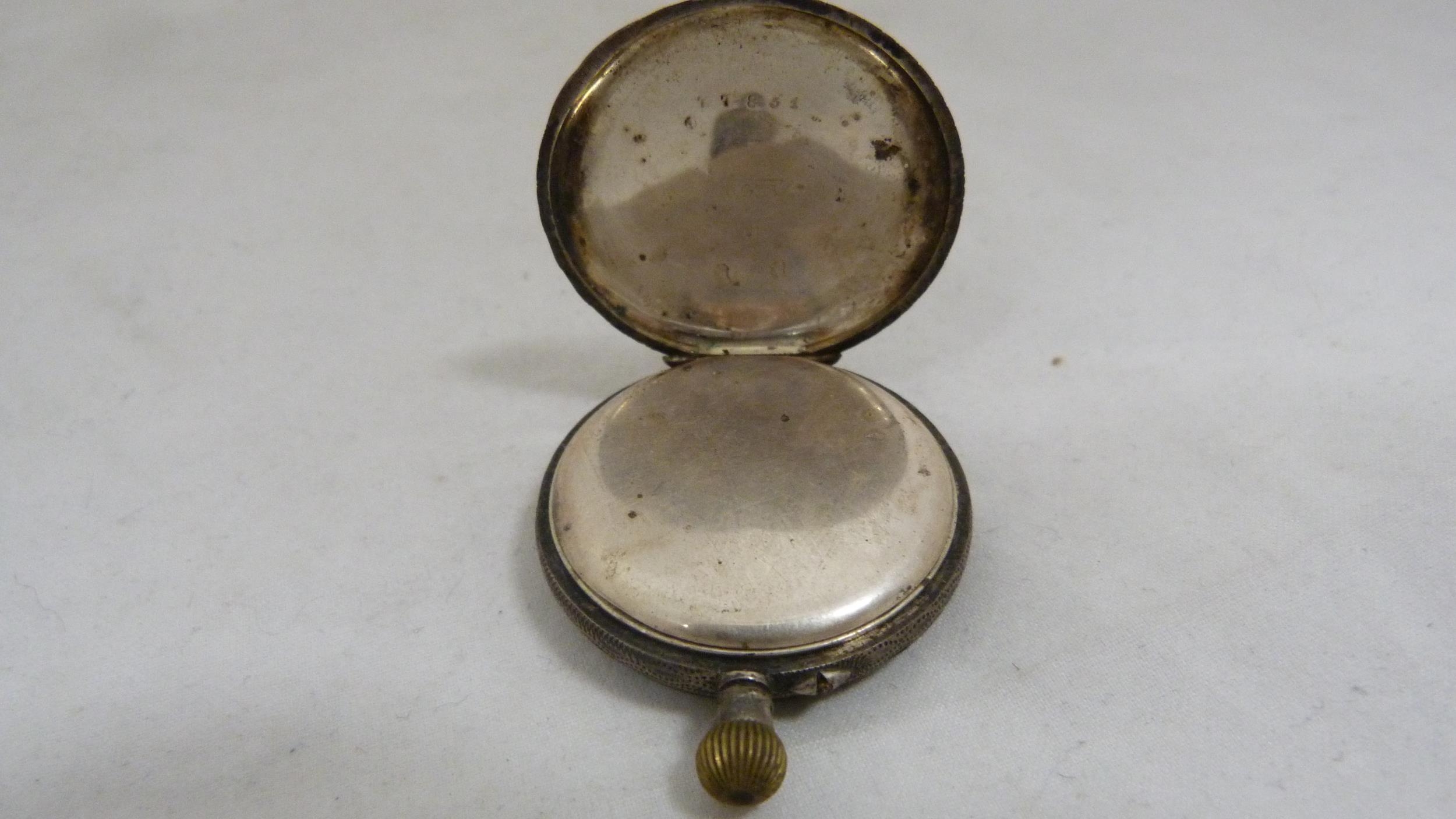 Victorian lady's silver-cased fob watch with enamel dial, 32g gross, rolled gold photo pendant on chain, fashion pocket watch on fashion watch guard, modern wristwatch, silver ring, charm and pendant.