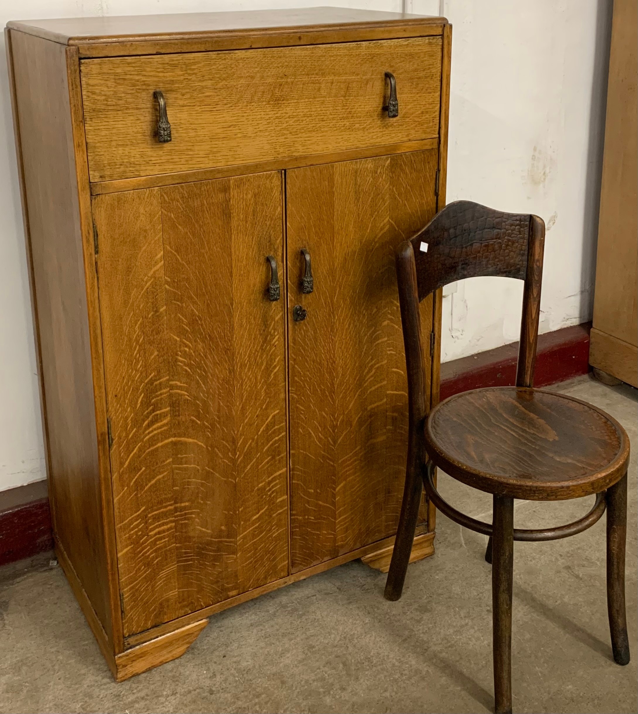 An Art Deco oak tall boy and an early 20th Century beech bentwood chair