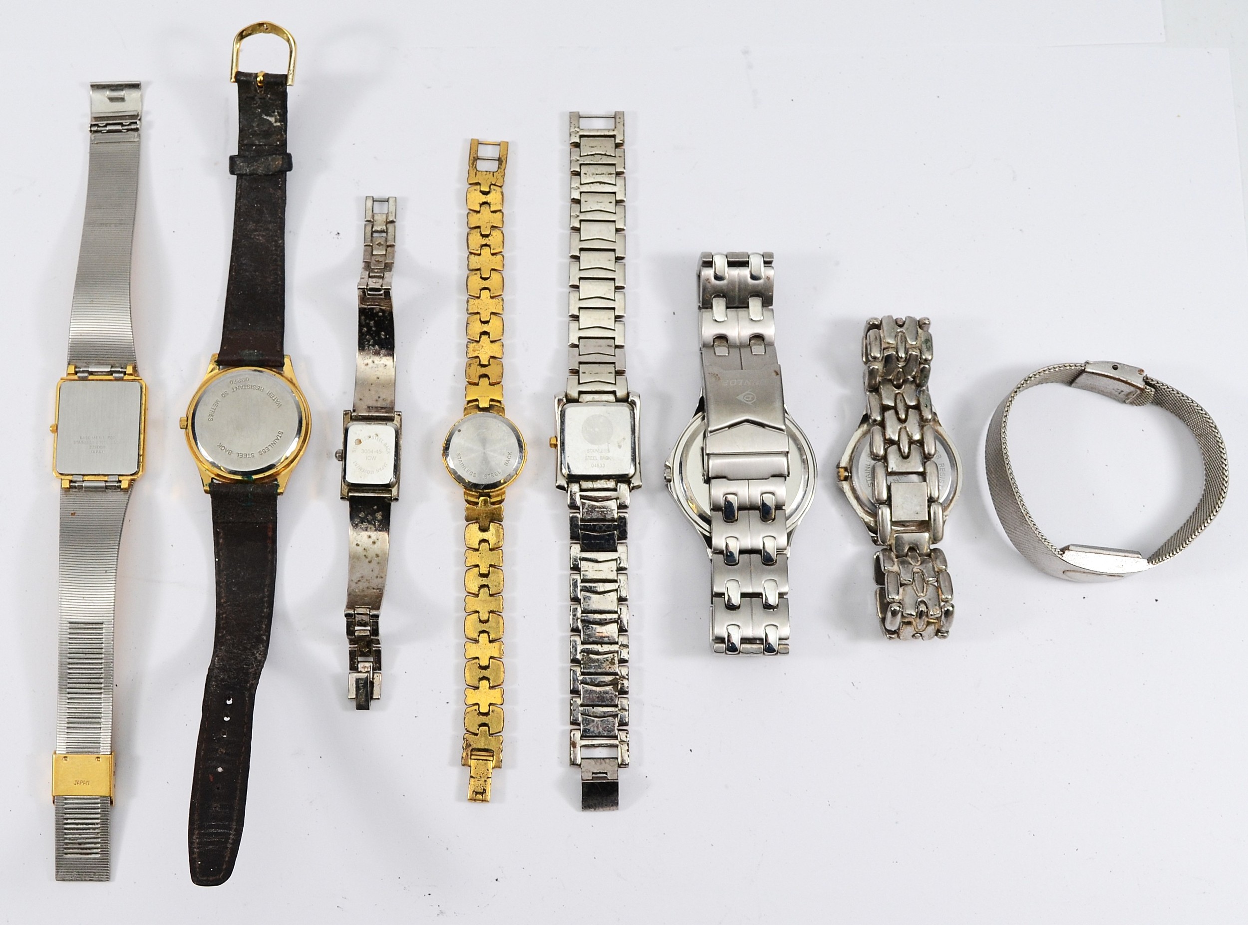 A collection of eight quartz fashion wristwatches to include, Accurist, Sekonda, Montine, Giani-Giorgio, Infinite and Dunlop. For spares and repairs.