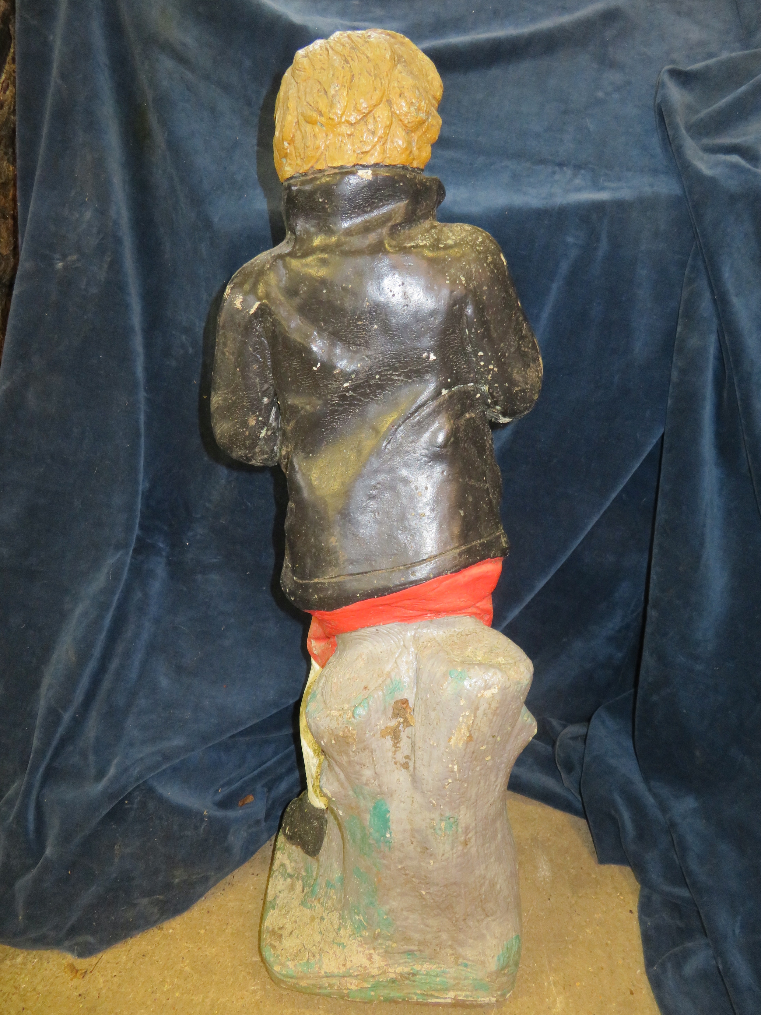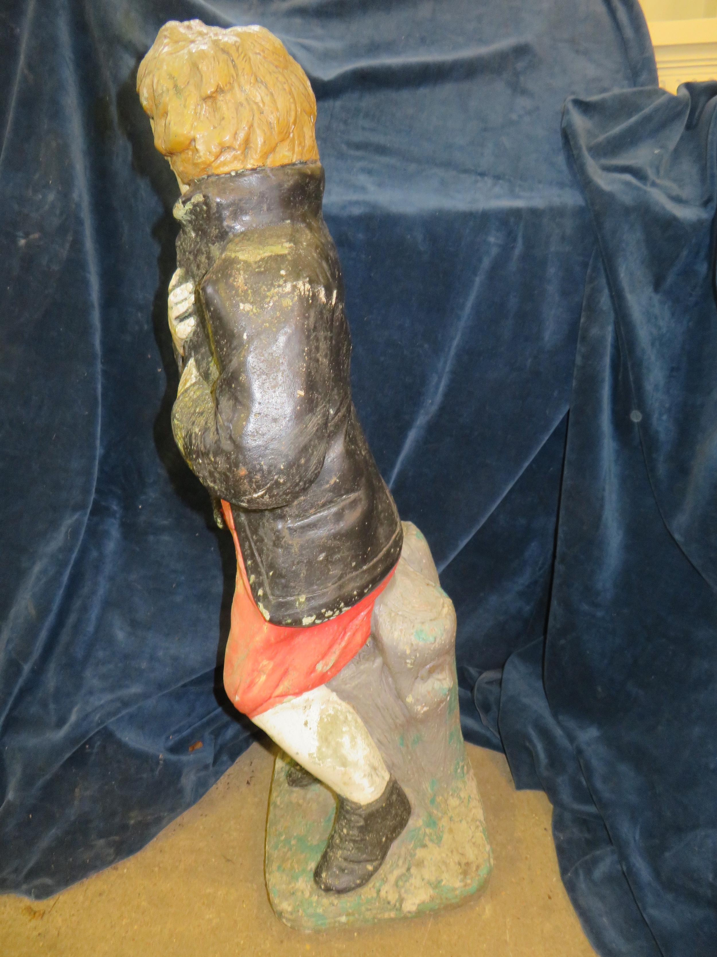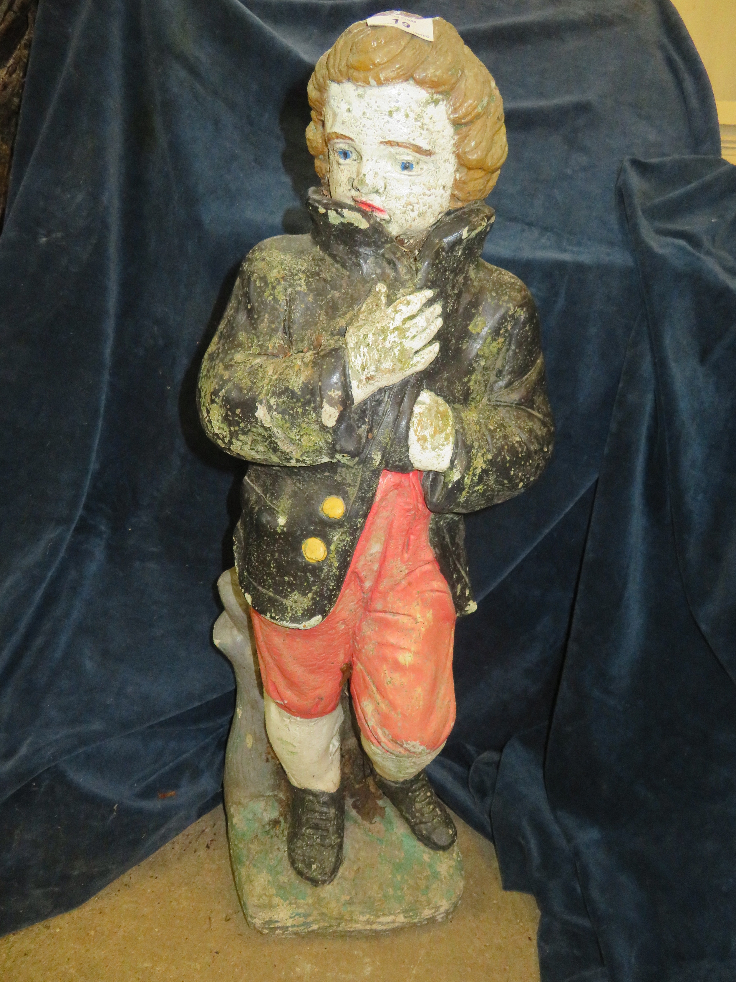 A concrete and painted garden ornament of a boy 74cm tall.