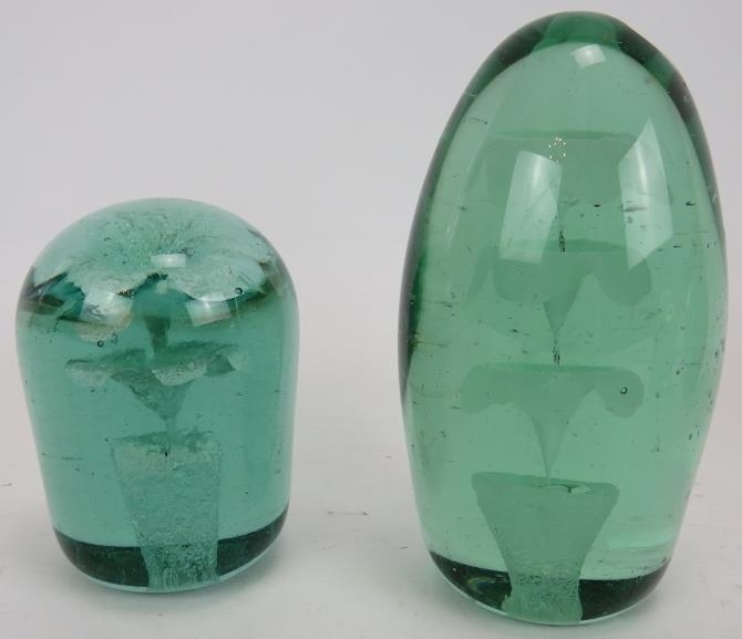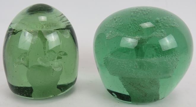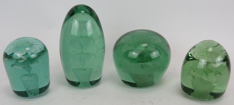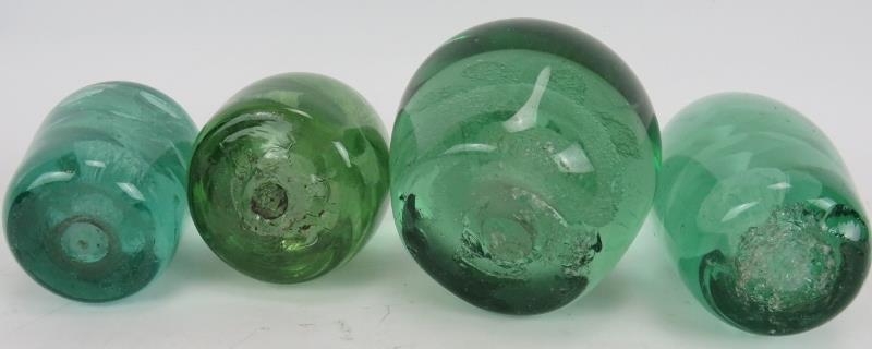 Four 19th century green glass end of day dump weights, each with snapped Pontil bases. Tallest 14cm. (4).