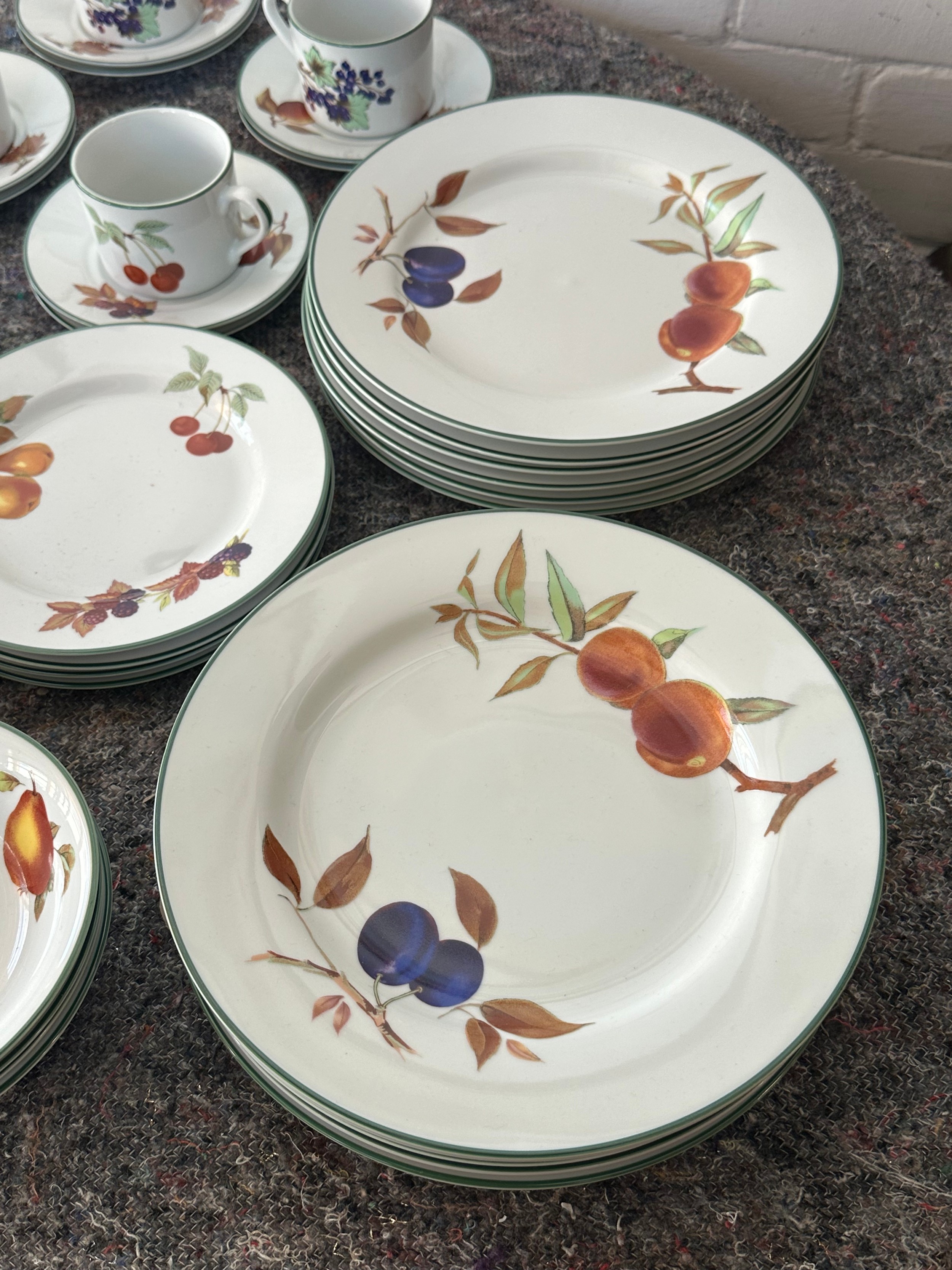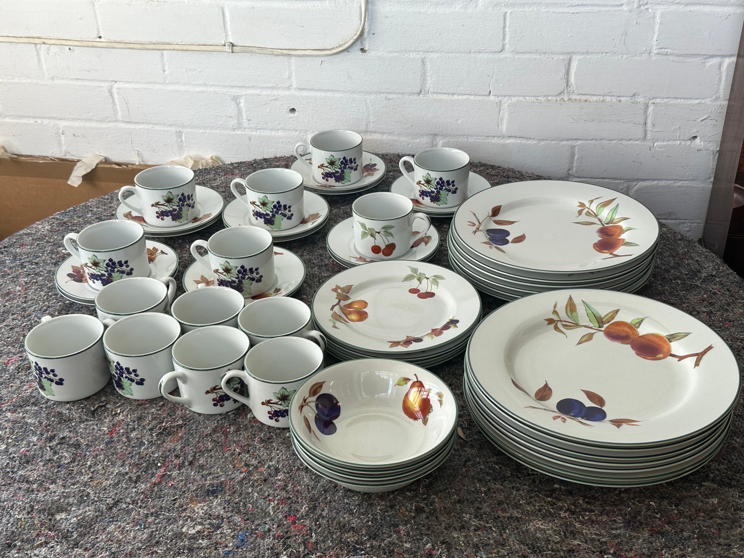 Royal Worcester Evesham Vale including 13 dinner plates, 12 cups/14saucers, 5 bowls, 4 side plates together with a quantity of Worcester Evesham