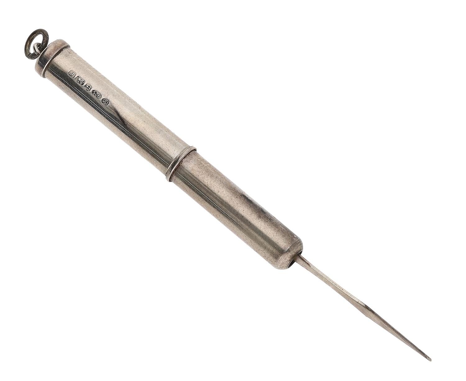 L J Millington silver propelling toothpick, hallmarked Birmingham 2016, 3" extended, 6gm