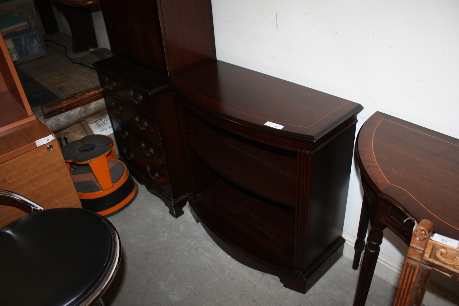 Mahogany Reproduction Bow Fronted Two-Tier Bookcase on Bracket Feet