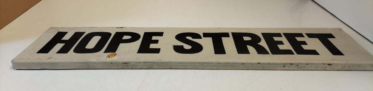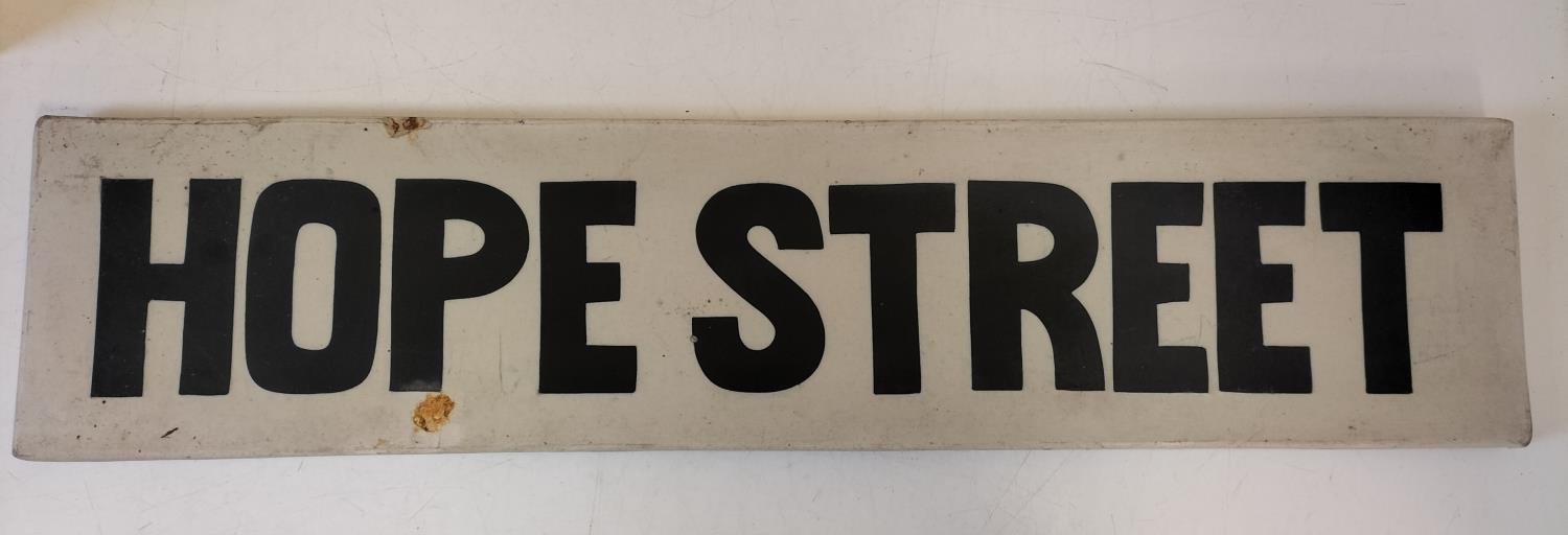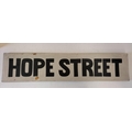 'Hope Street' Re-Claimed Ceramic Pottery Street Sign 66cm x 16cm. Few Nibbles. Removed from Streets in the Stoke on Trent Area in the 1960's. Backstamped Ambrose Walker & Co Ltd, Stafford Pottery in Stockton on Tees and Produced 1870-1905.