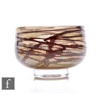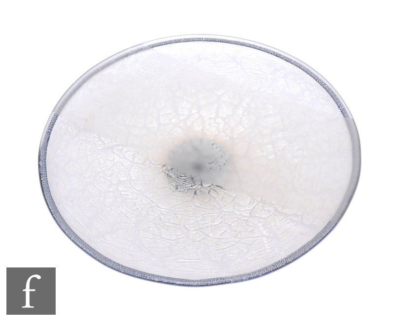 Timothy Harris - Isle of Wight - A contemporary studio Crizzle & Cameo glass plate, of circular footed form, opaque lizard cut band of crizzled ground with silver foil inclusions within black border, engraved signature and dated 2005, diameter 27cm.