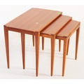 A mid 20th century walnut nest of tables. Of rectangular form with shaped corners, square tapering.