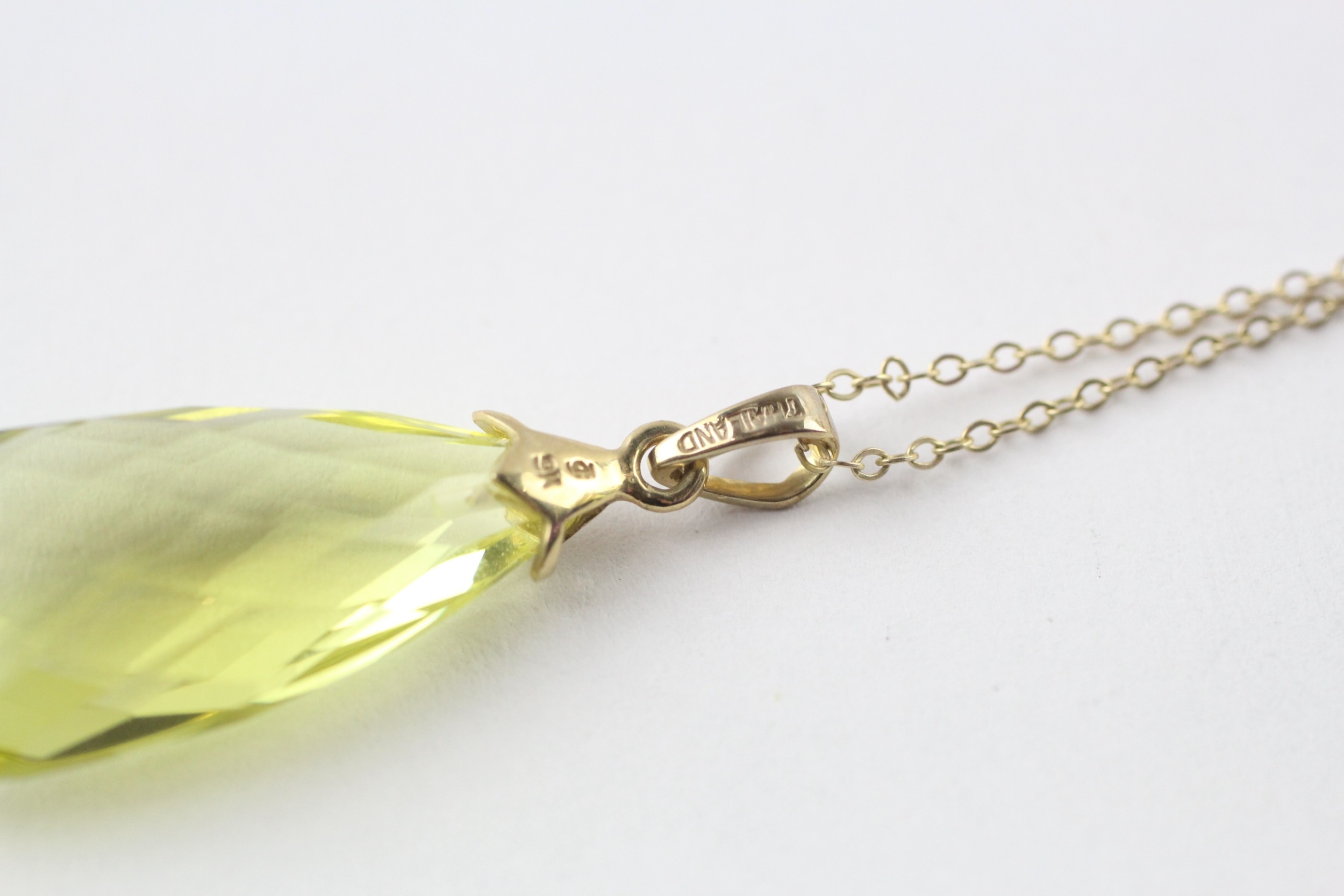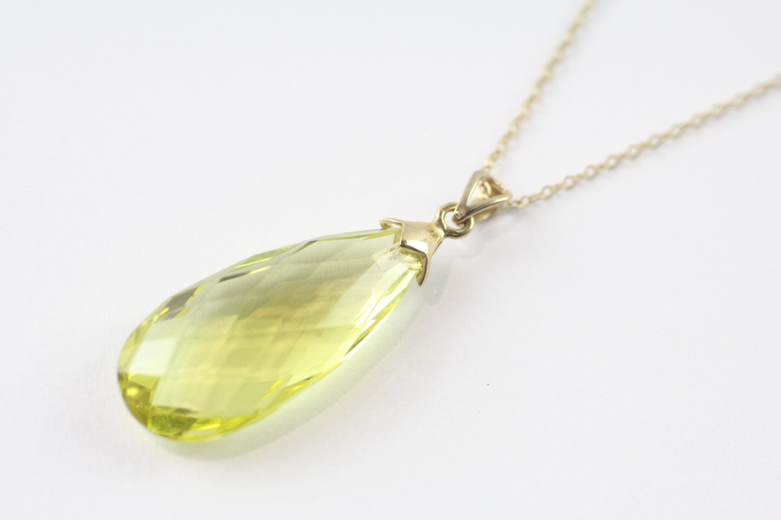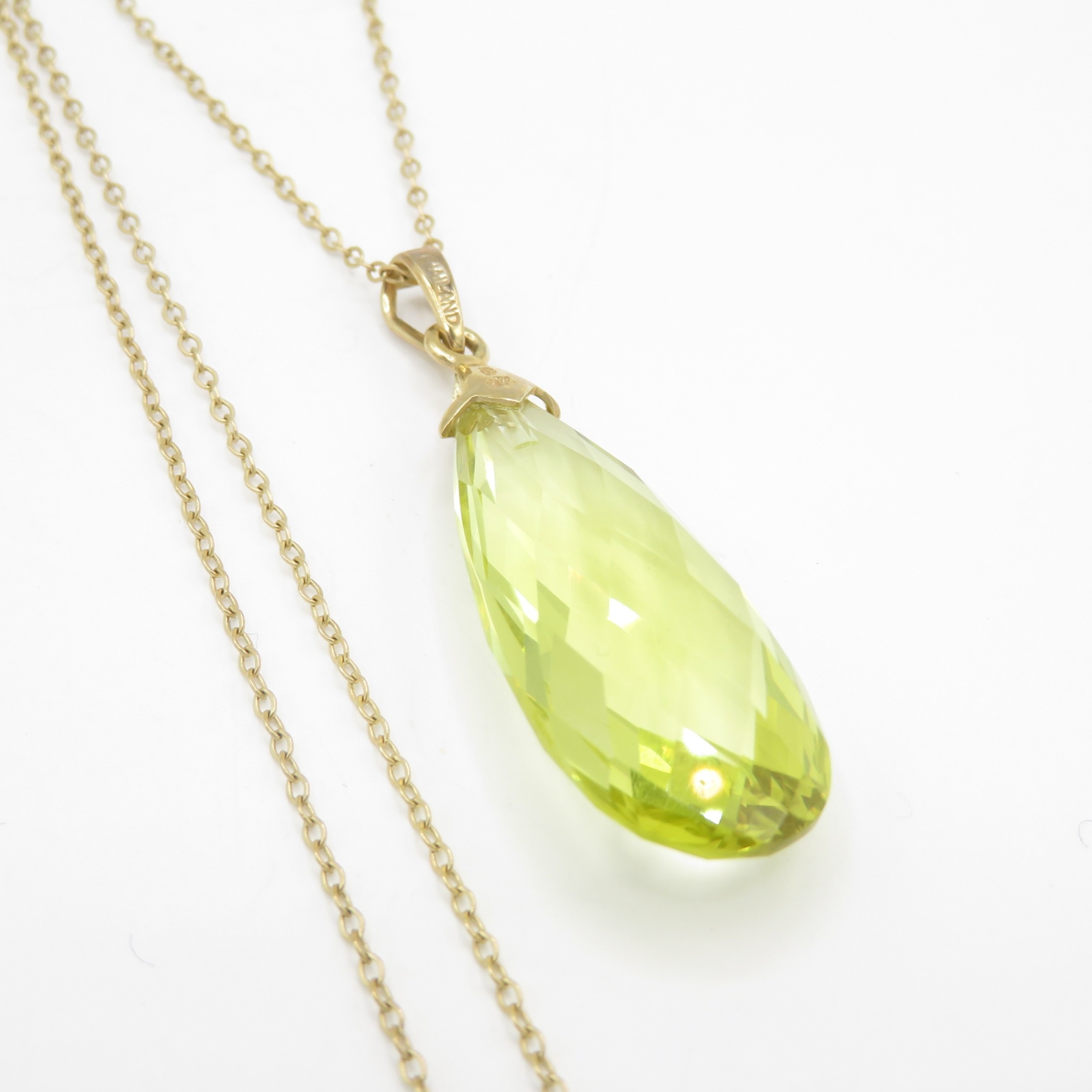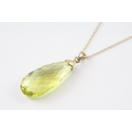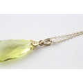 9ct gold briolette cut peridot pendant and chain (5.2g)