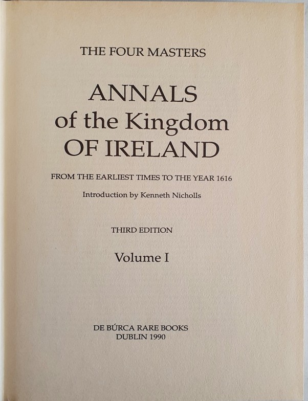 Annals of the Kingdom of Ireland. From the Earliest Times to the Year 1616 by The Four Masters. De Burca Rare Books, 1990. Seven large Volumes. Attractive set