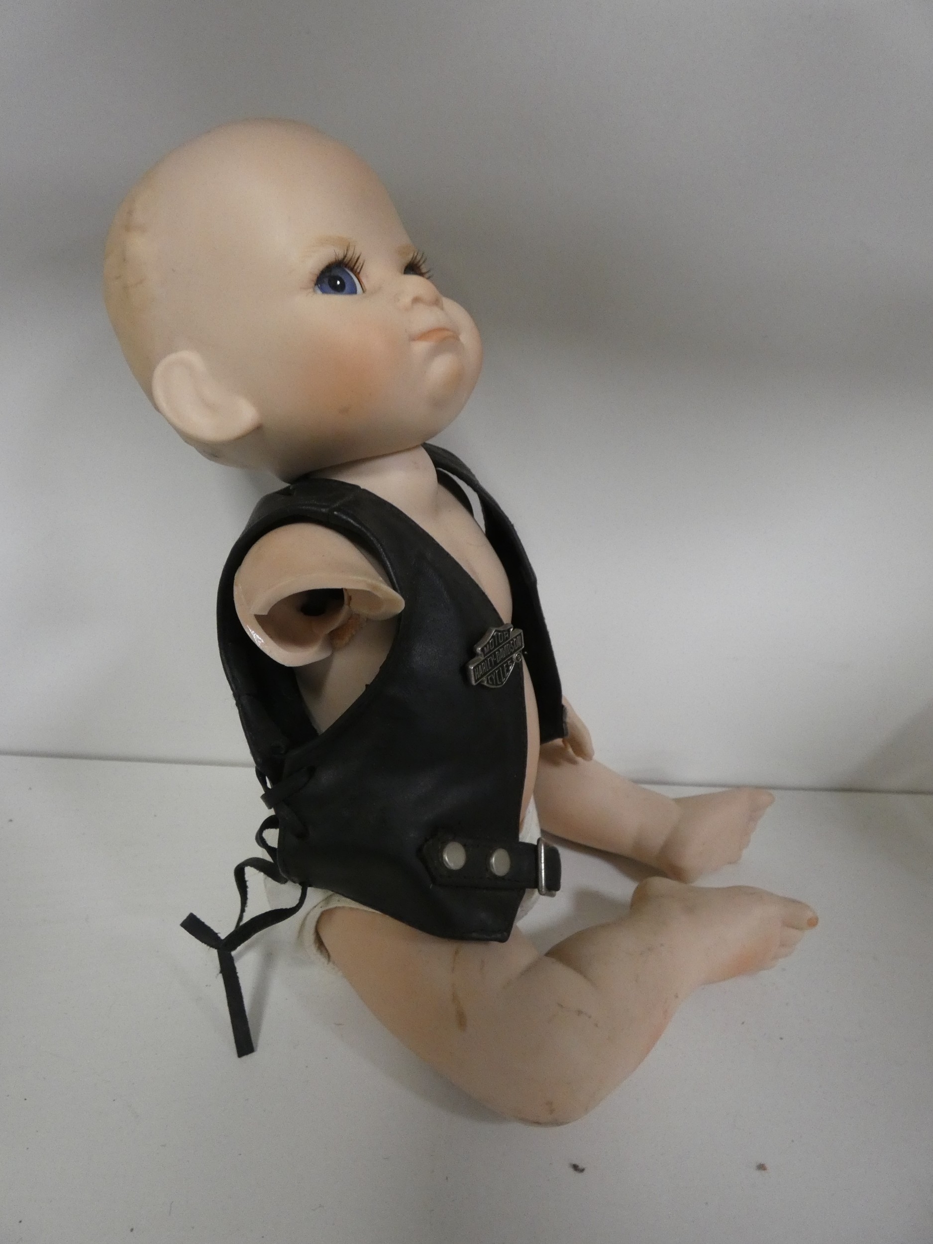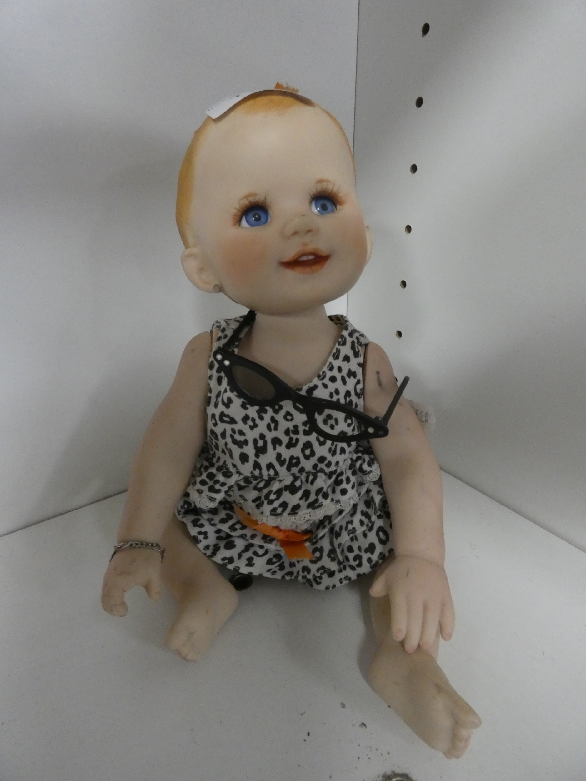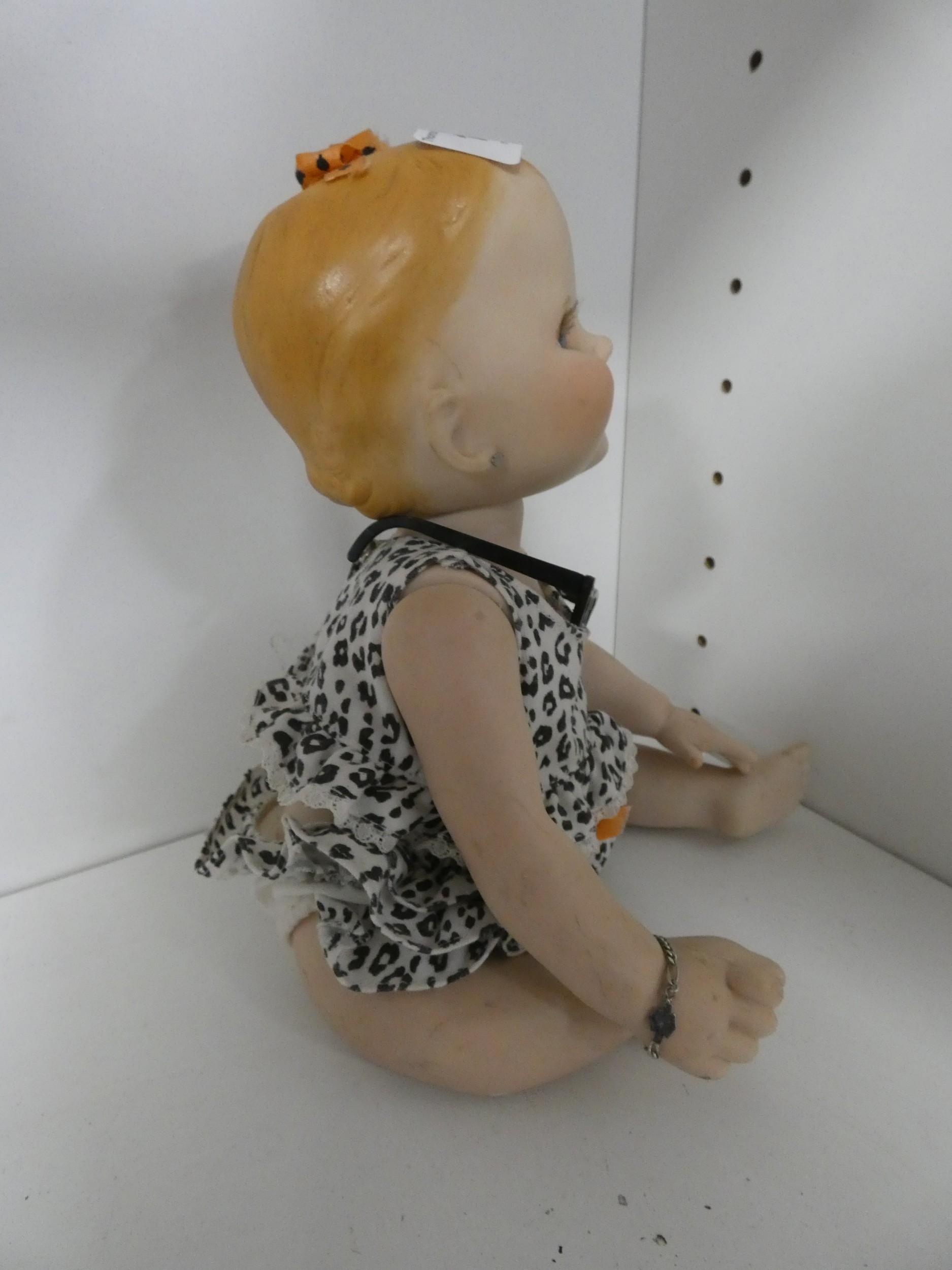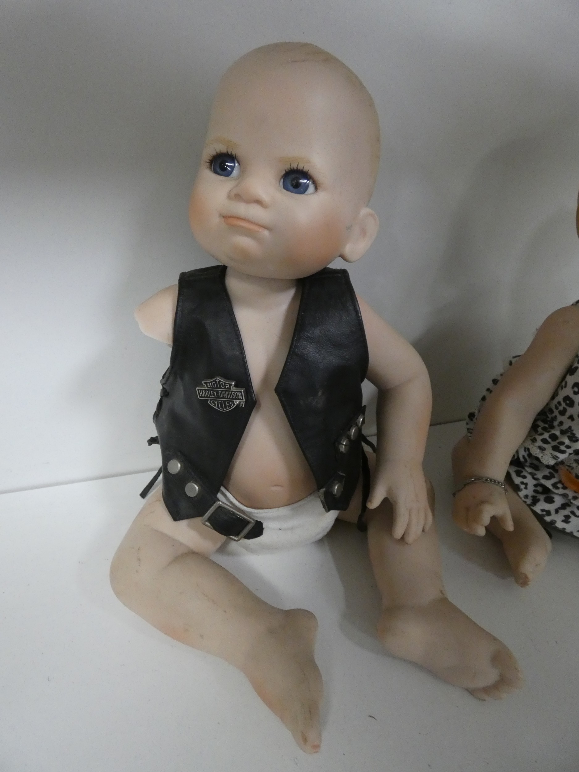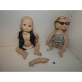 Two china dolls in the form of a boy and girl, with clothing. (2)