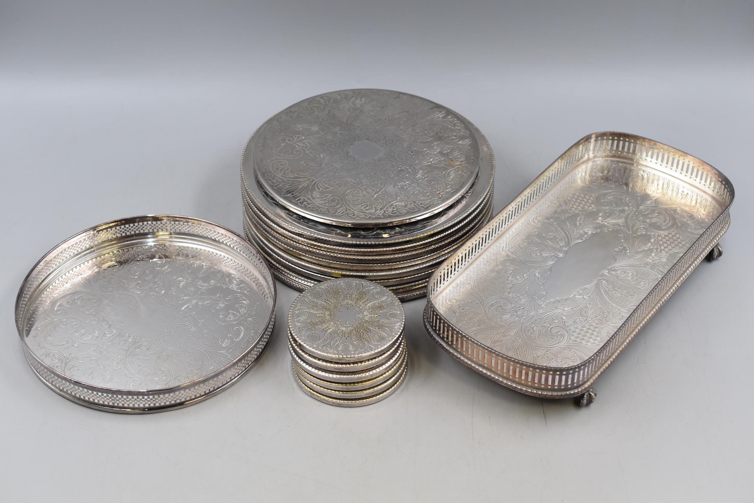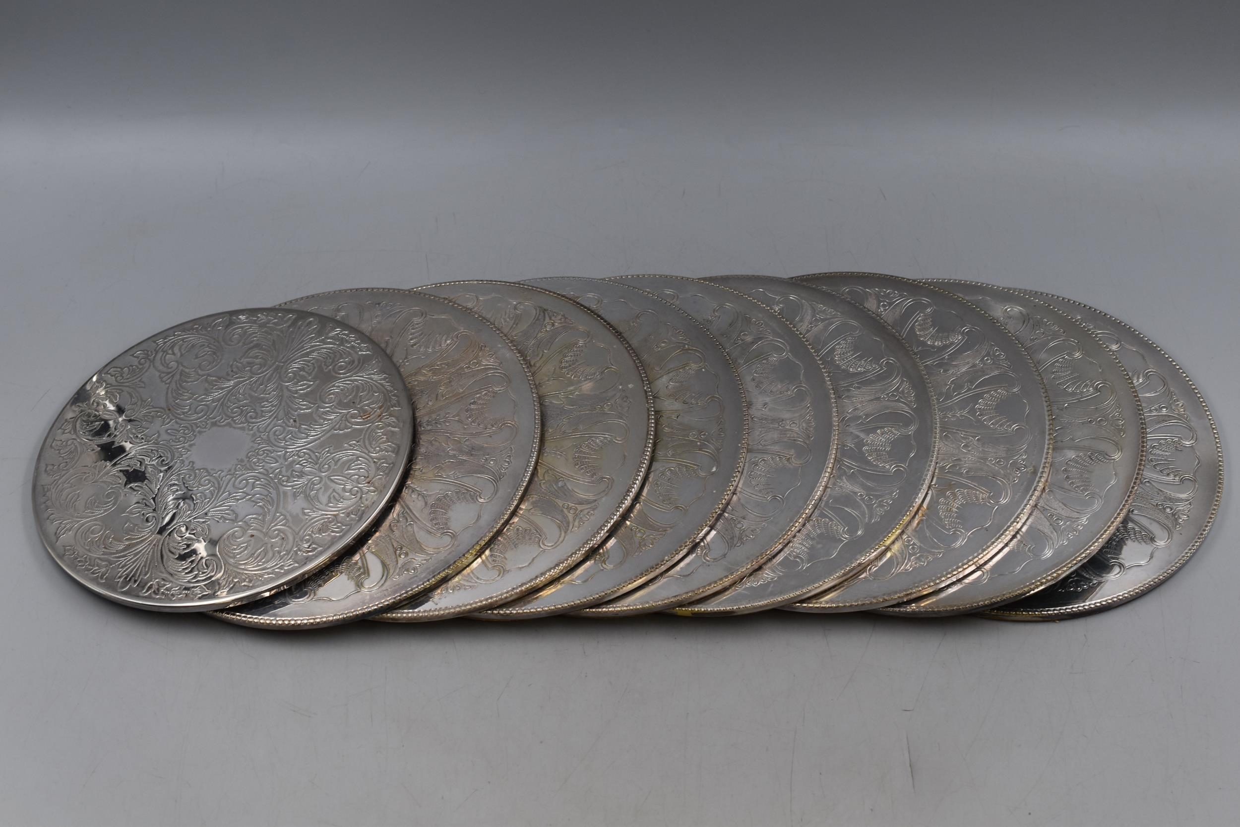Collection of Silver plated Coasters largest 8.5" Dia