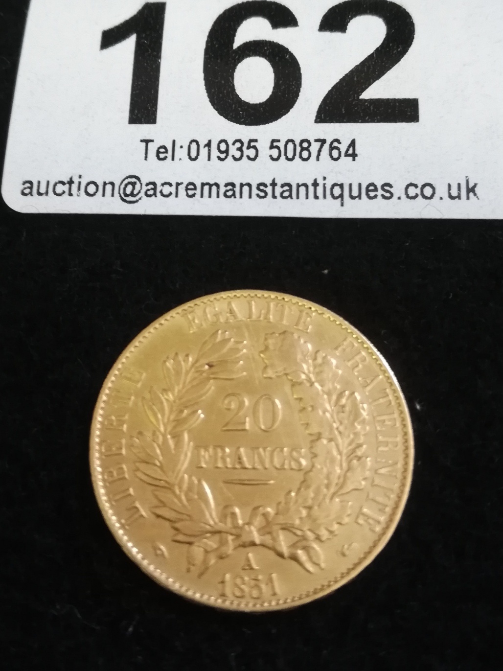 1851 France Napoleon III 20 francs gold coin